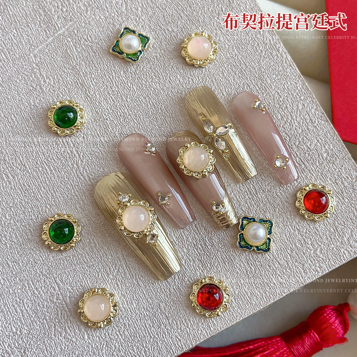 ブチラティ宮廷式ネイルアクセサリーの金属に真珠を入れています。