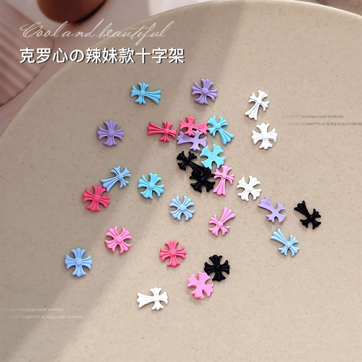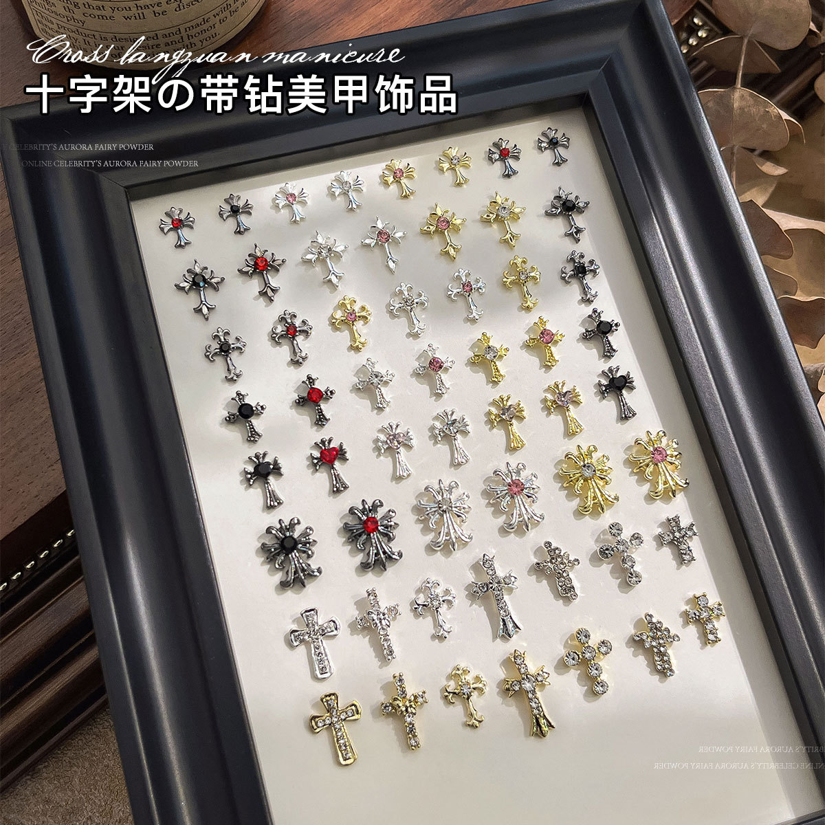 克罗心十字架美甲饰品复古朋克风爆闪镶钻合金指甲钻穿戴配饰批发