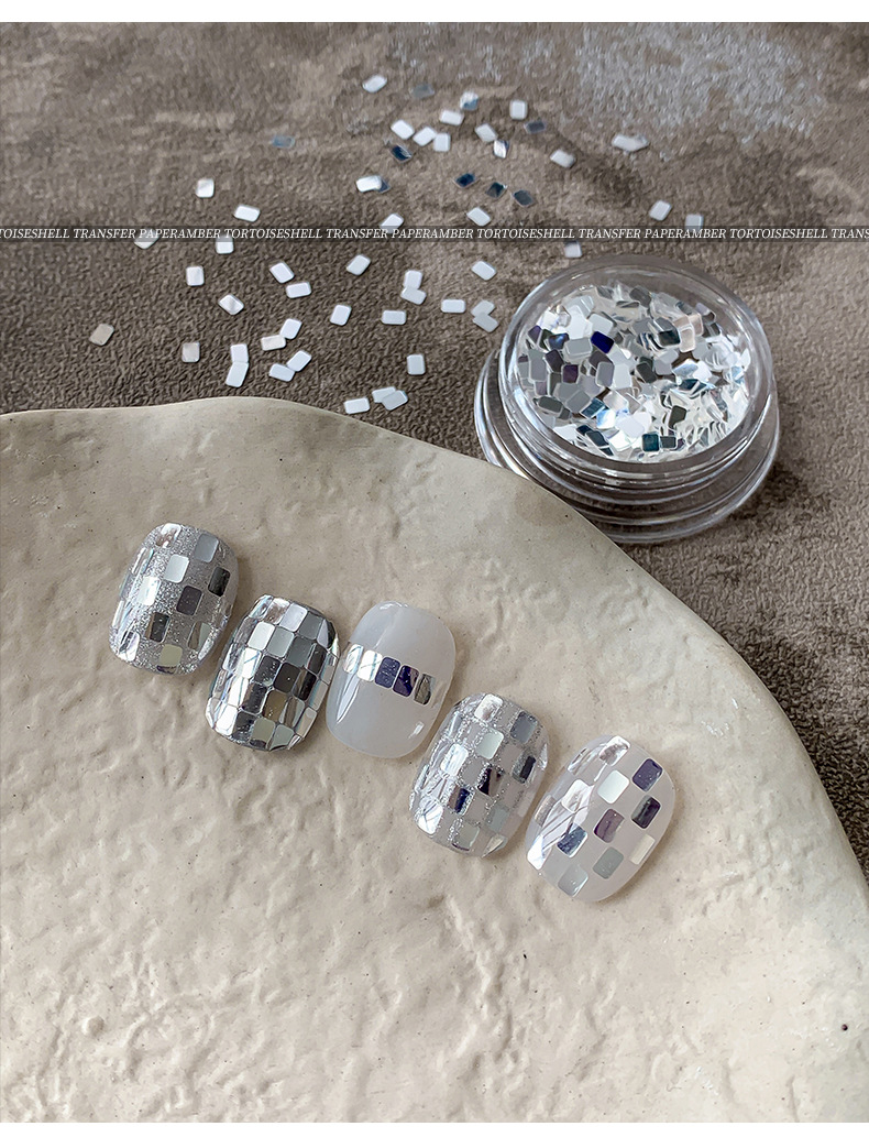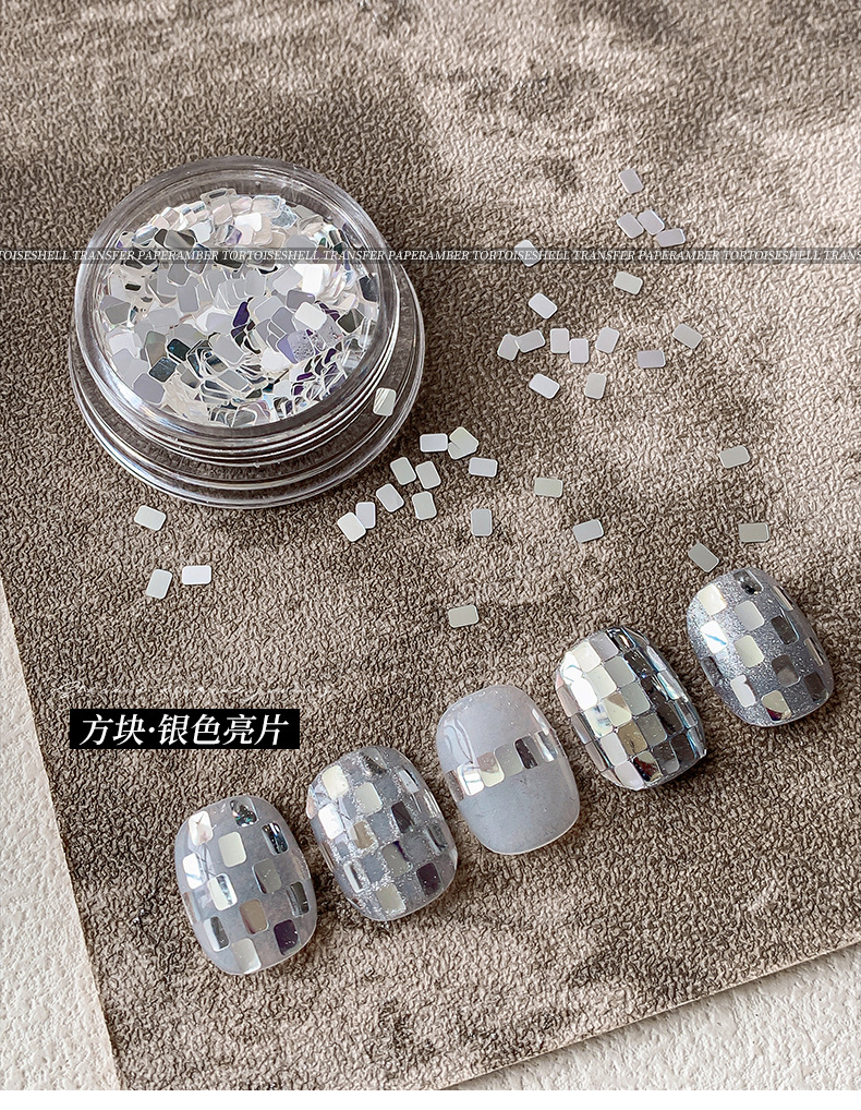 新型の四角の銀色のスパンコールのネイルアクセサリーの箱の中で精巧で爆発的なミニの百合は甲の装飾品の卸売りを身につけます。