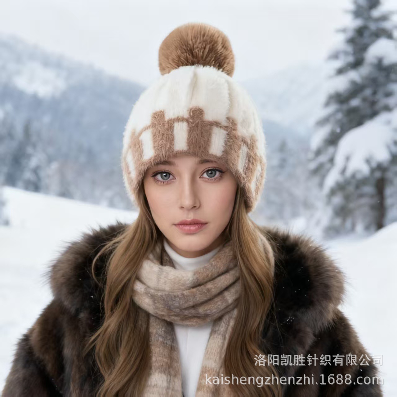 冬季时尚拼色针织帽子骑行护耳帽女防风帽子大头围保暖加厚毛线帽
