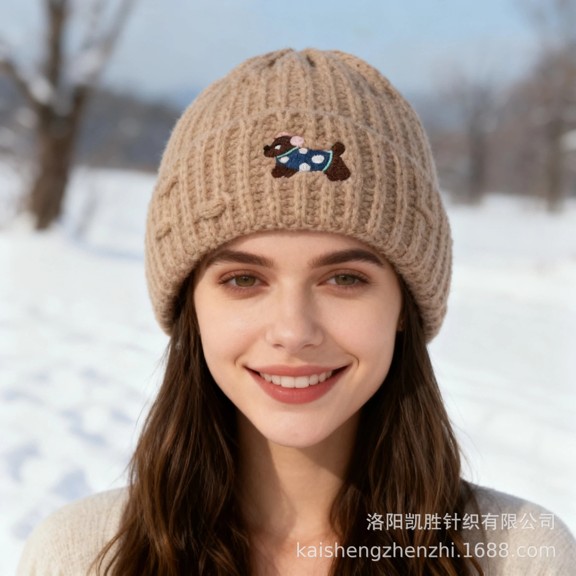 跨境针织帽女冬季新款氛围感大头围显脸小网红腊肠狗保暖毛线帽潮