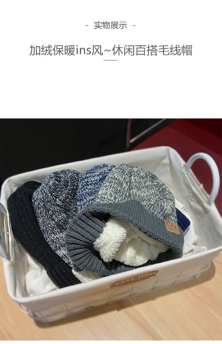 跨境款秋冬季针织帽防寒加绒加厚青年时尚百搭毛线帽户外冷帽批发