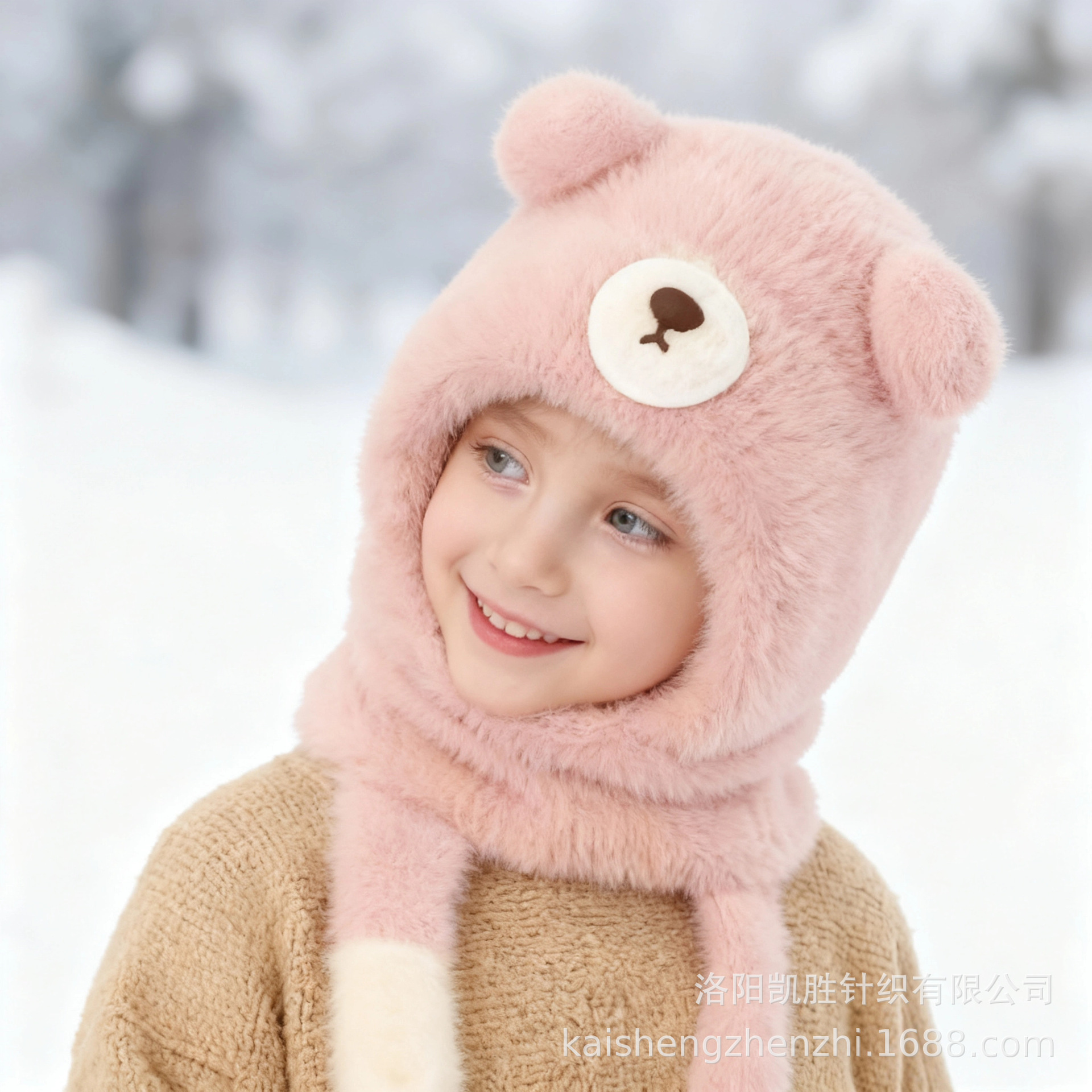 跨境儿童帽冬季加绒保暖护耳帽男女童围脖口罩一体毛线套头帽批发