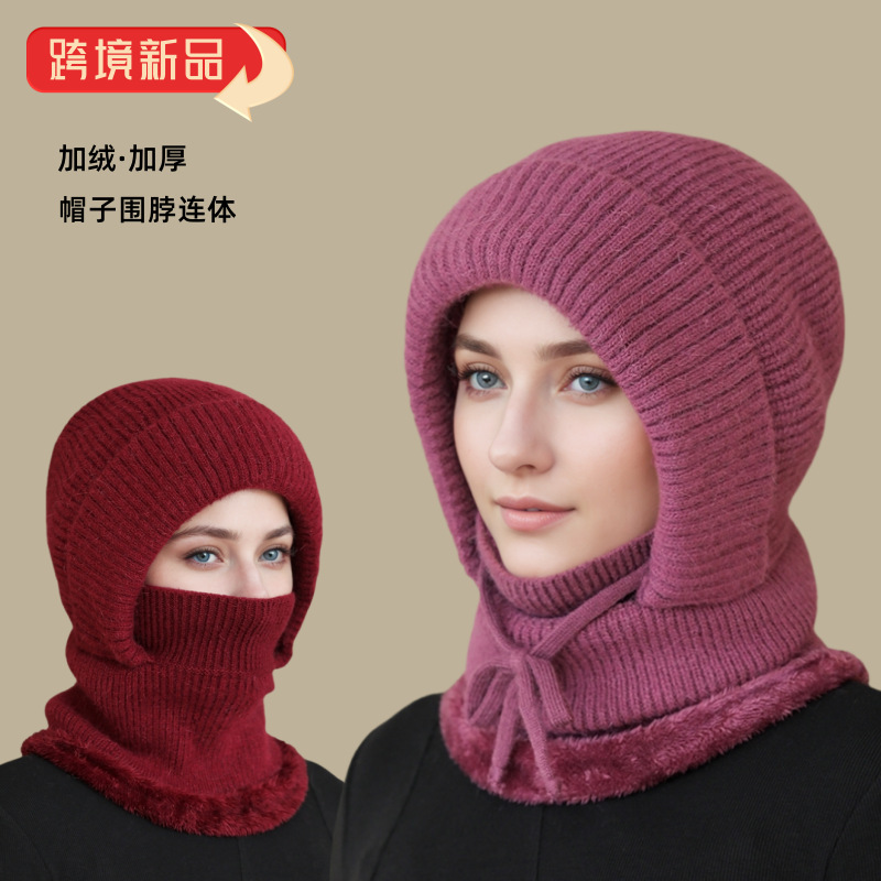 冬季帽子围脖口罩一体妈妈帽女加绒保暖防寒风冬天骑行针织毛线帽