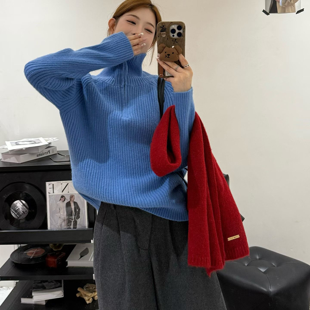 欧货2025秋冬韩版时尚半拉链显瘦毛衣女高领长袖慵懒风针织打底衫