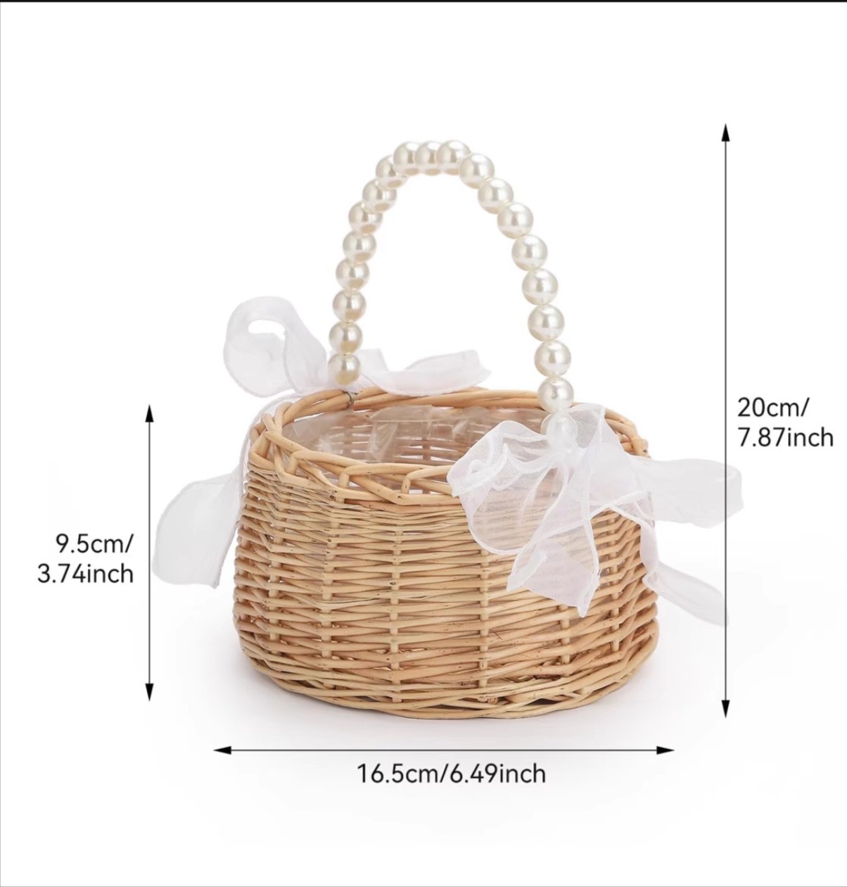 国境を越えた新しいスタイルの真珠付き柳編みフラワーバスケット、お土産用小花バスケット、フラワーガール用フラワーバスケット、写真撮影用小道具