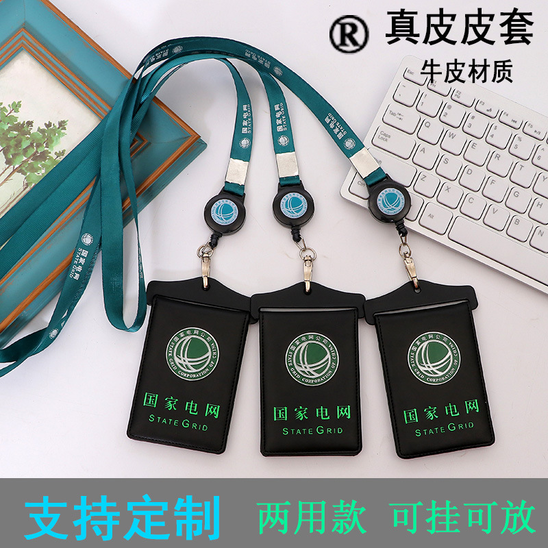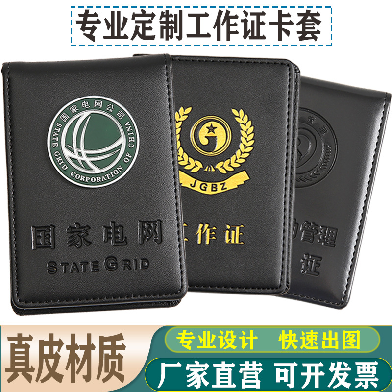 本革国家電網国家電網作業証革カバーストラップ付き牛革カードカバーオーダーメードlogo図案文証明書保護カバー