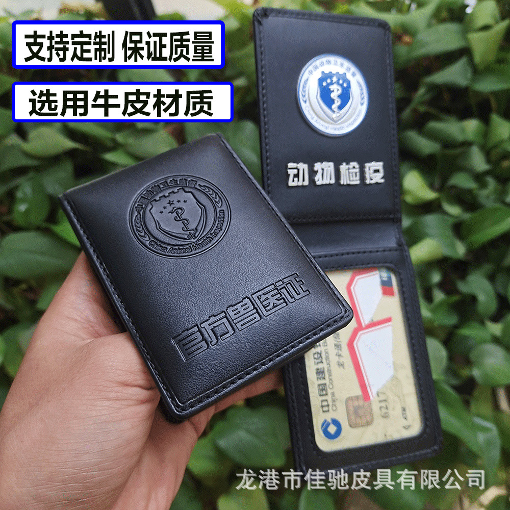 公式獣医証明書本革動物検疫作業証明書カードホルダーレザーケース牛革ID保護カバーカードバッグ金属ラベル
