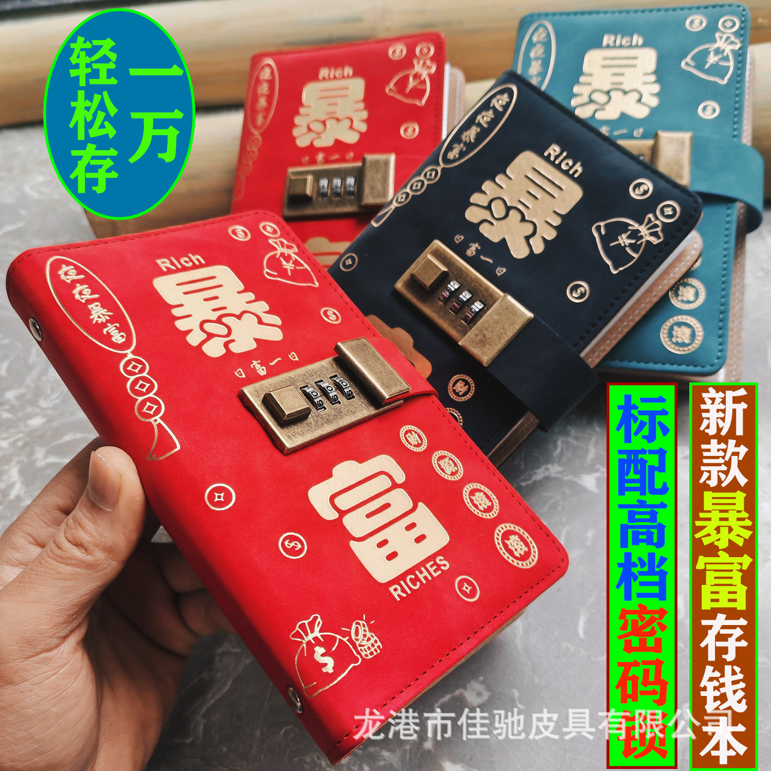 新型高級暴富暗号鍵貯金本網紅現金貯金帳ネット紅紙幣収納帳創意財布