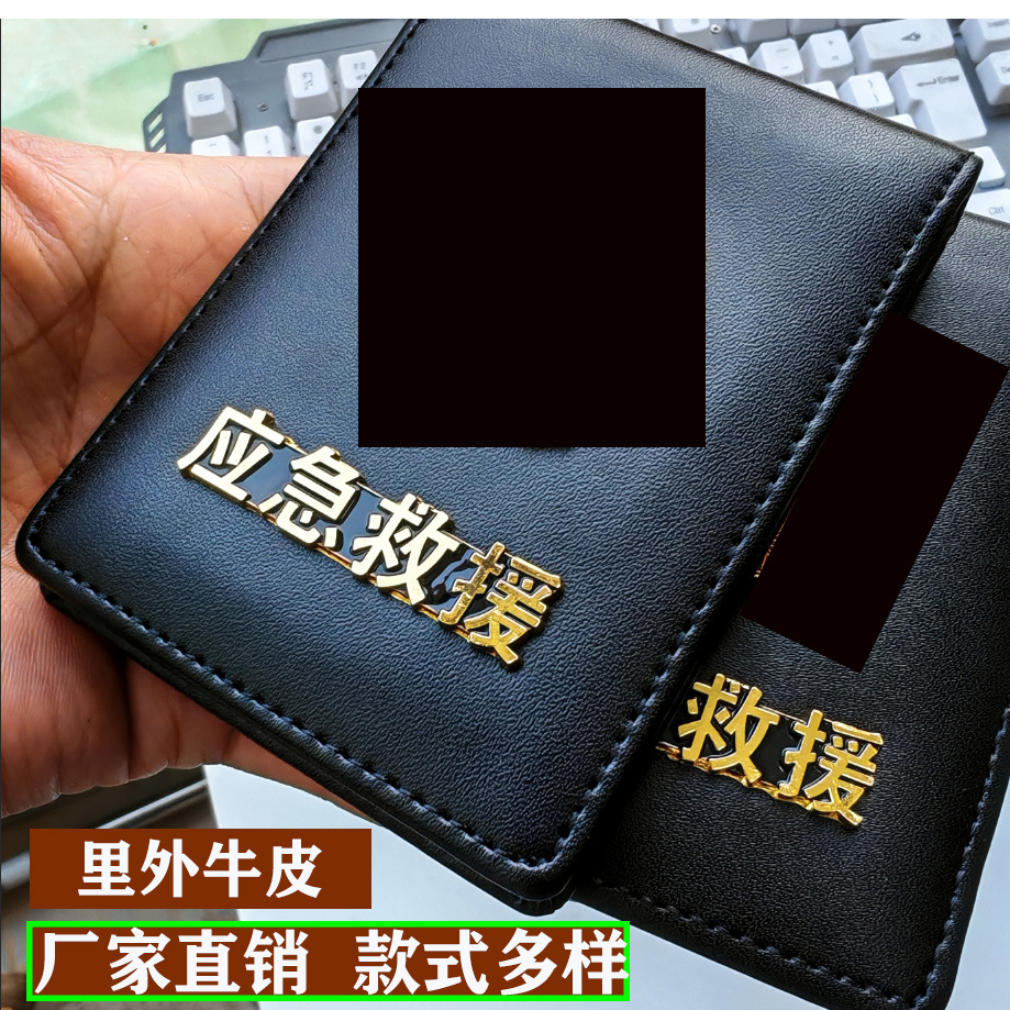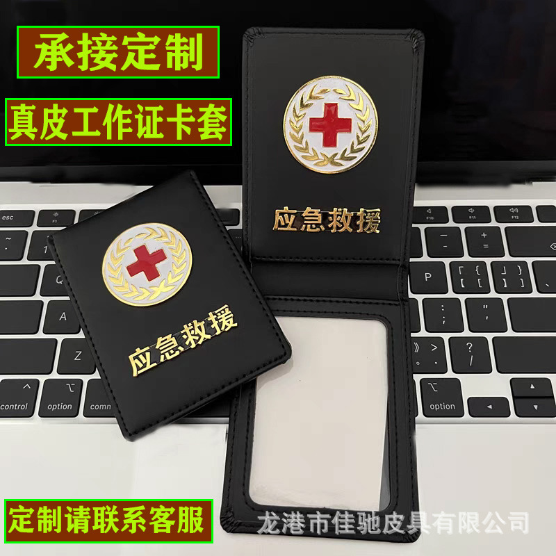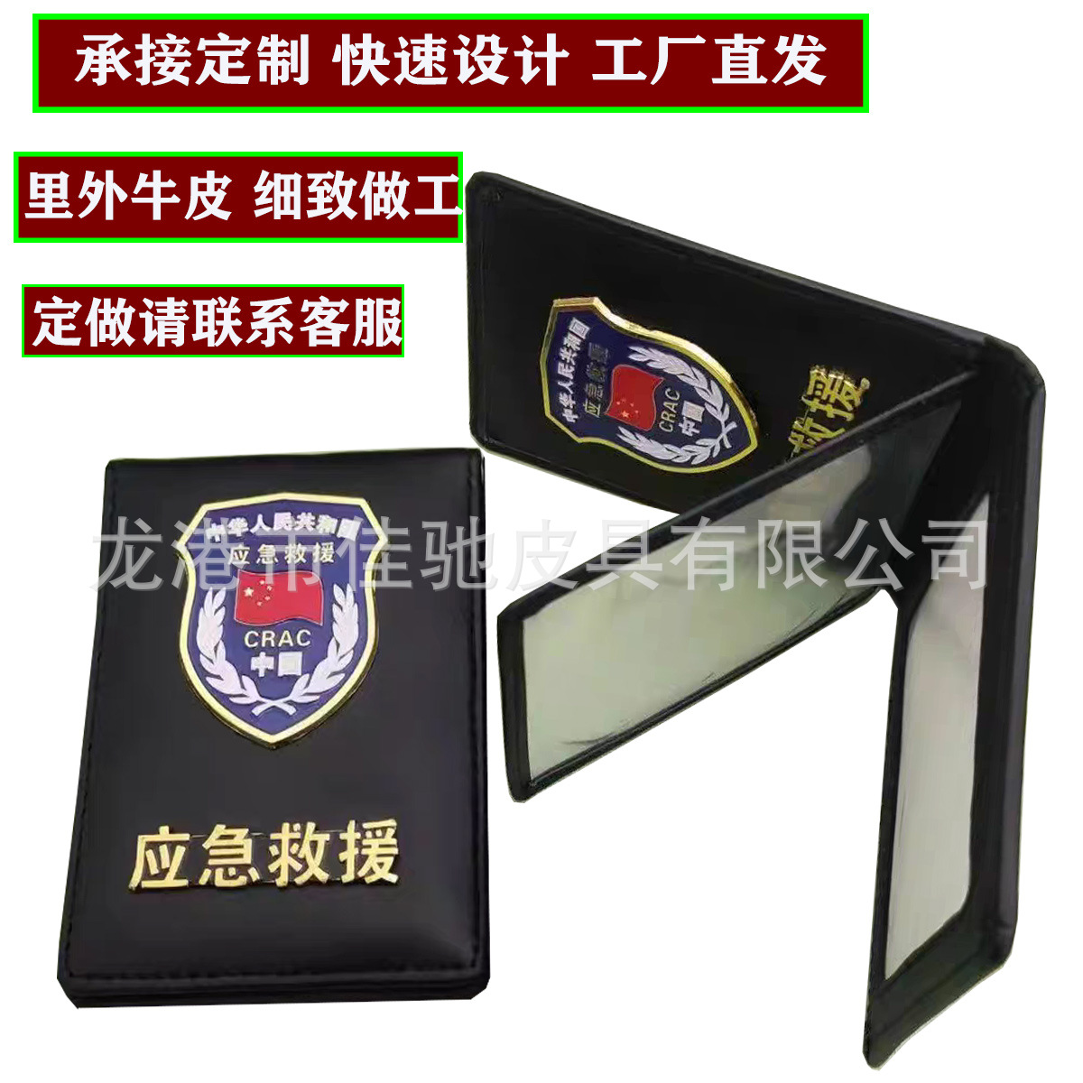 真皮应急救援工作证卡套皮套高档证件保护套金属标卡包多卡位