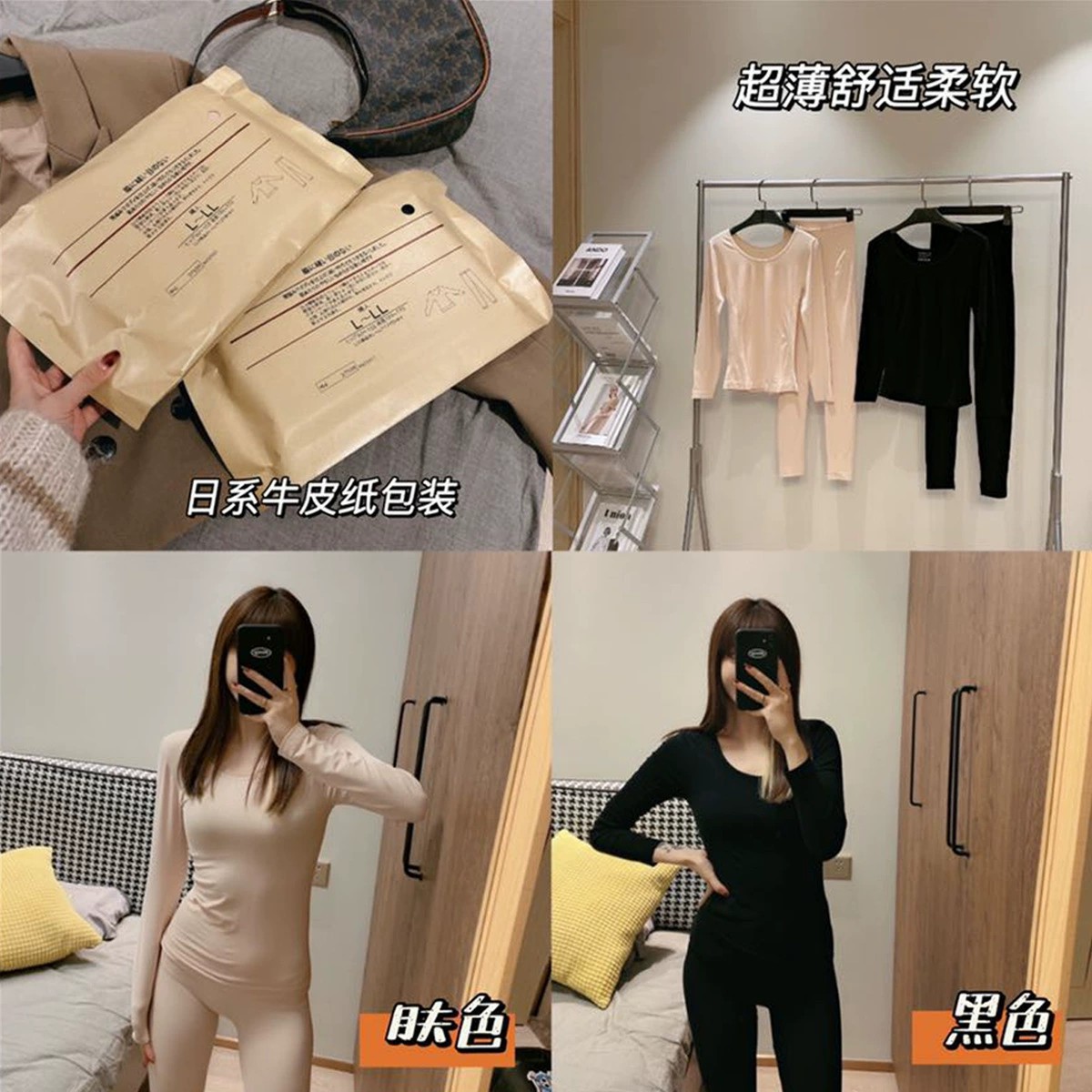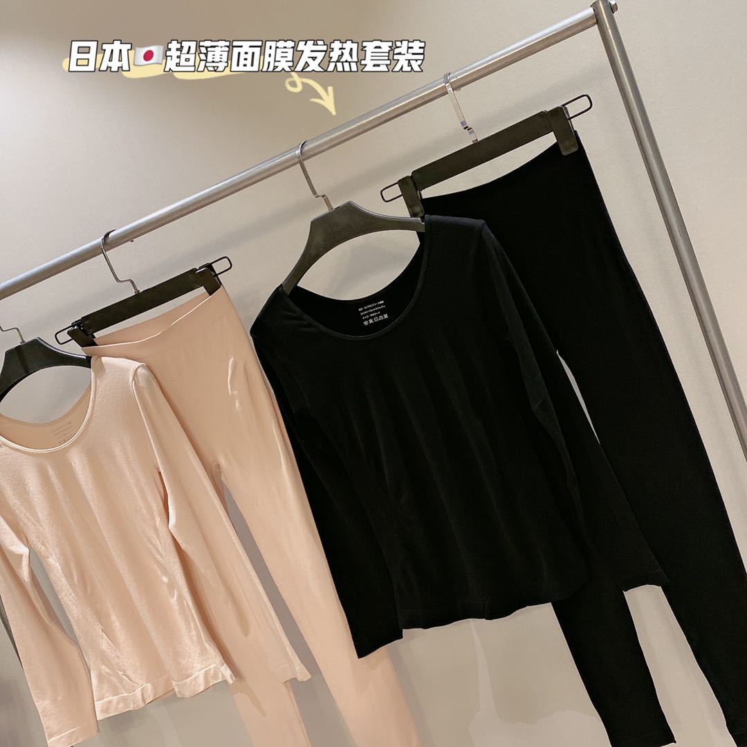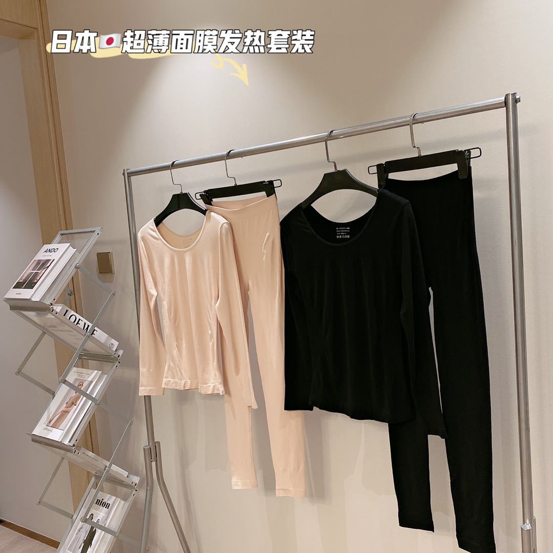 日本超薄面膜发热套装塑形自发热弹力紧身保暖内衣套装女秋衣秋裤