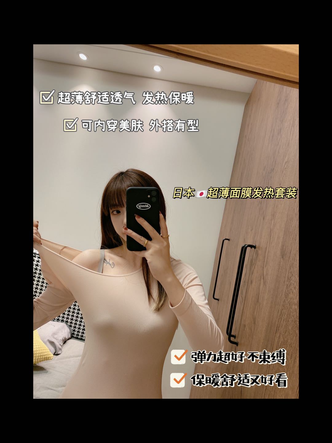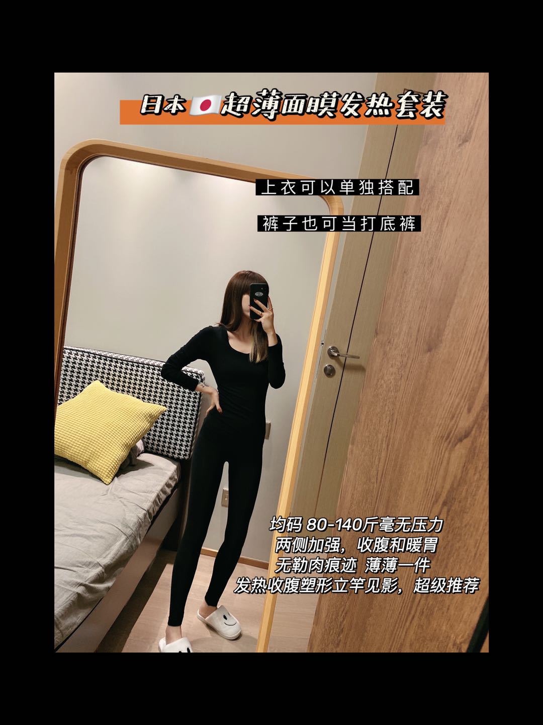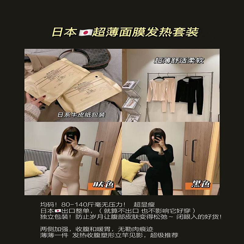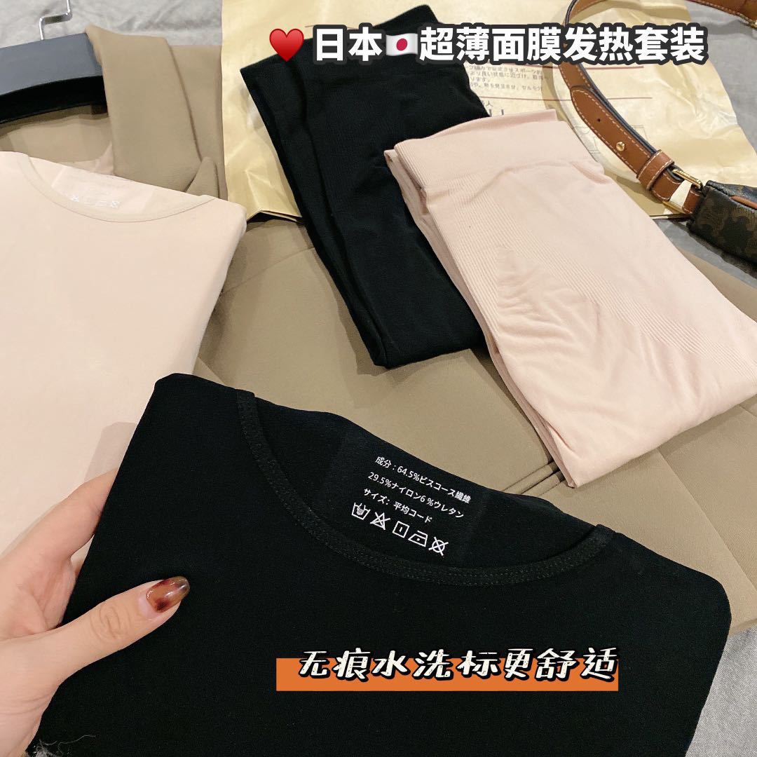 日本超薄面膜发热套装女秋冬修身显瘦塑形自发热弹力紧身保暖内衣