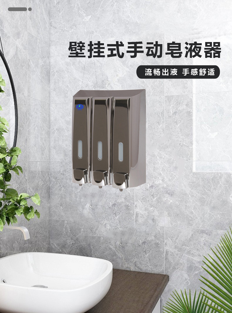 LKS大容量三頭手動石鹸ディスペンサー壁掛け式ホテルホテルトイレプレス液石鹸ディスペンサー