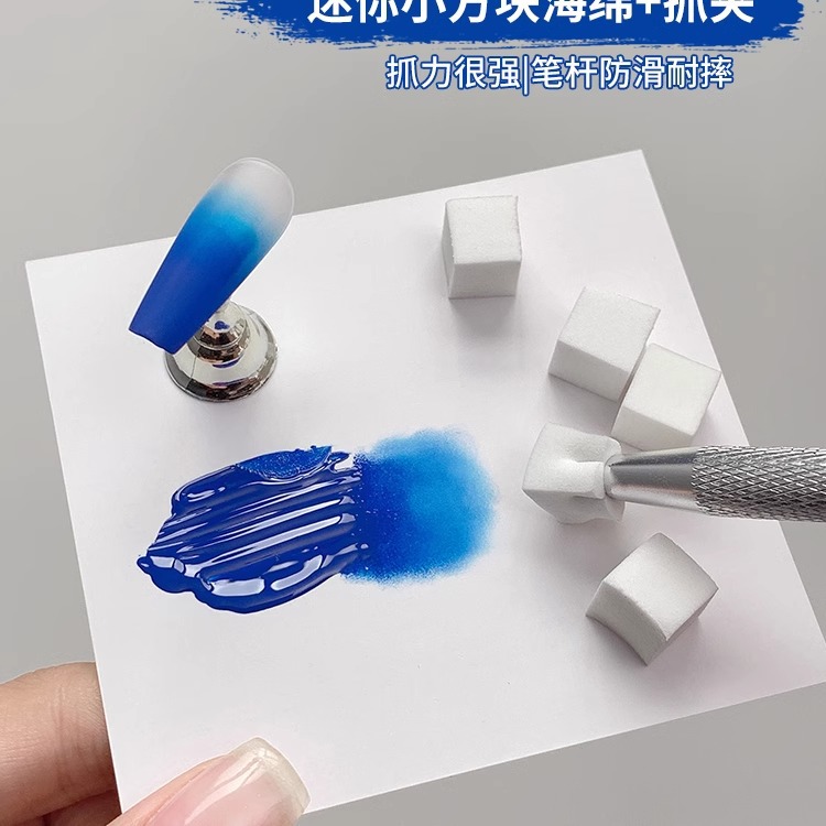 ミニネイルはゴムのスポンジの塊の豆腐の塊のグラデーションをたたいてぼんやりしています。