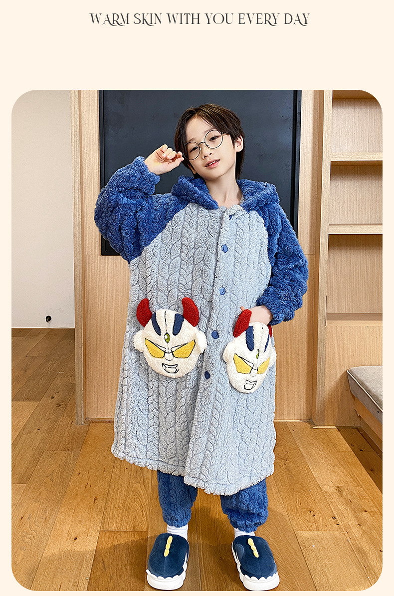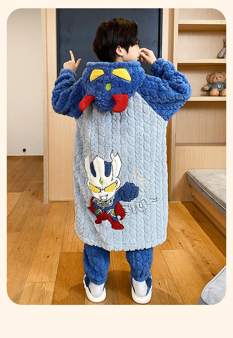 男童睡袍冬季珊瑚绒奥特曼中大童加厚浴袍儿童法兰绒睡衣家居服
