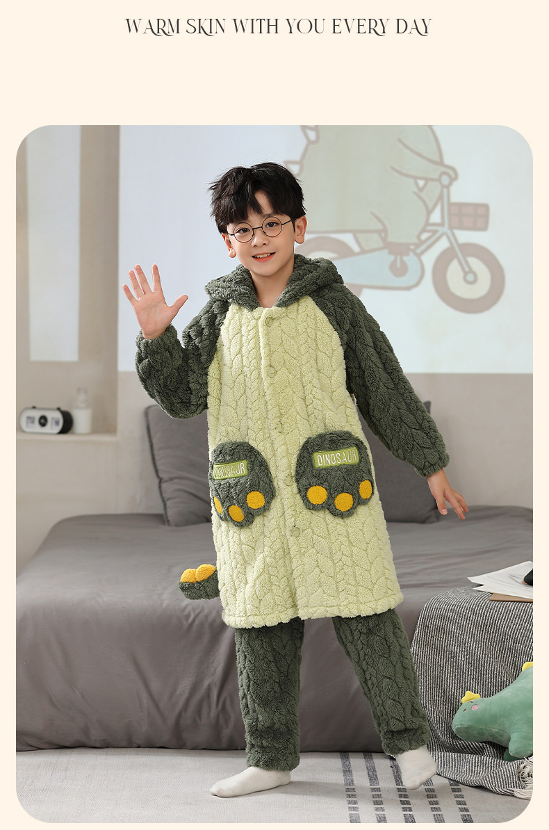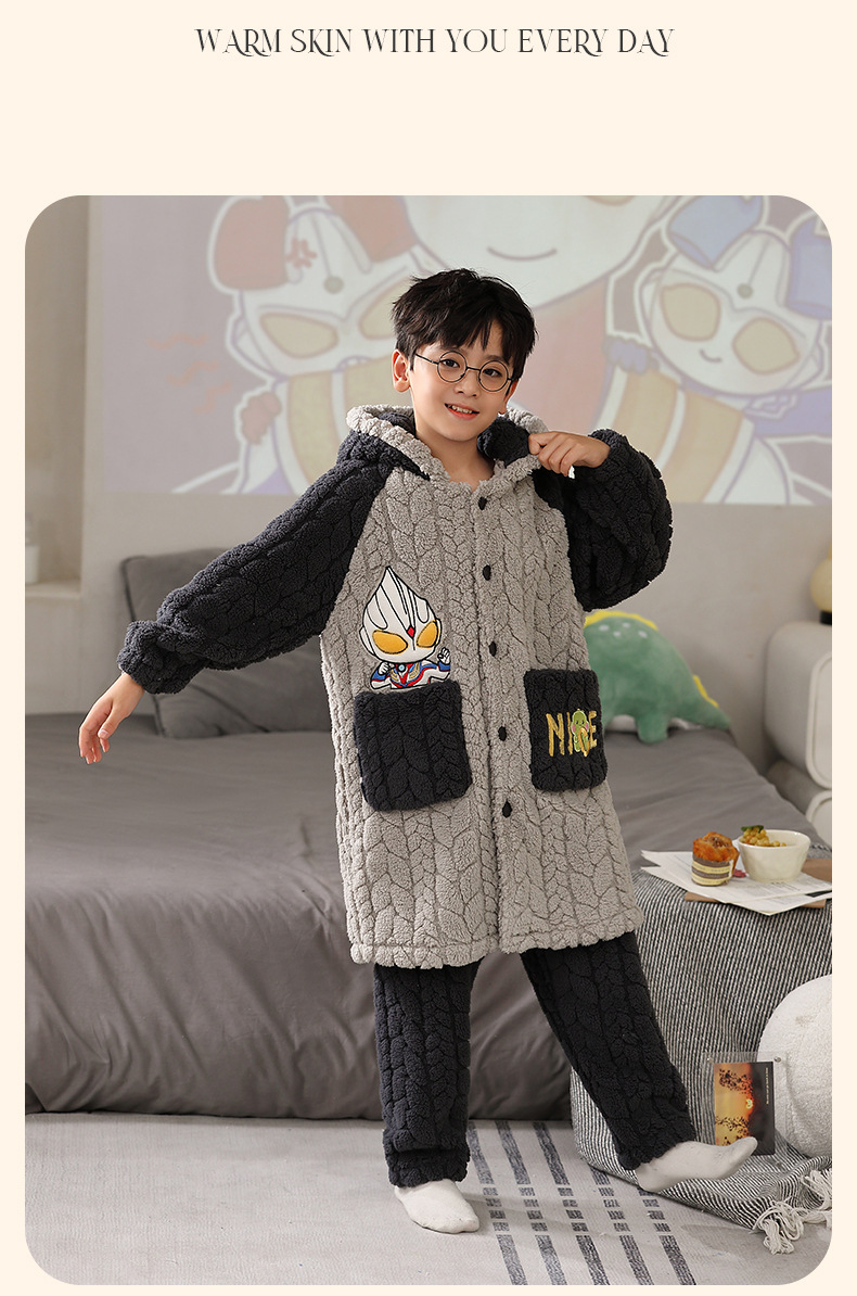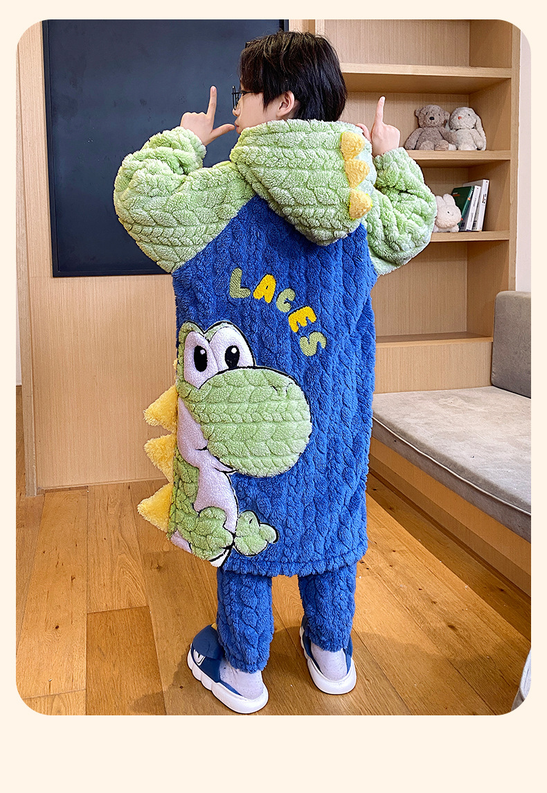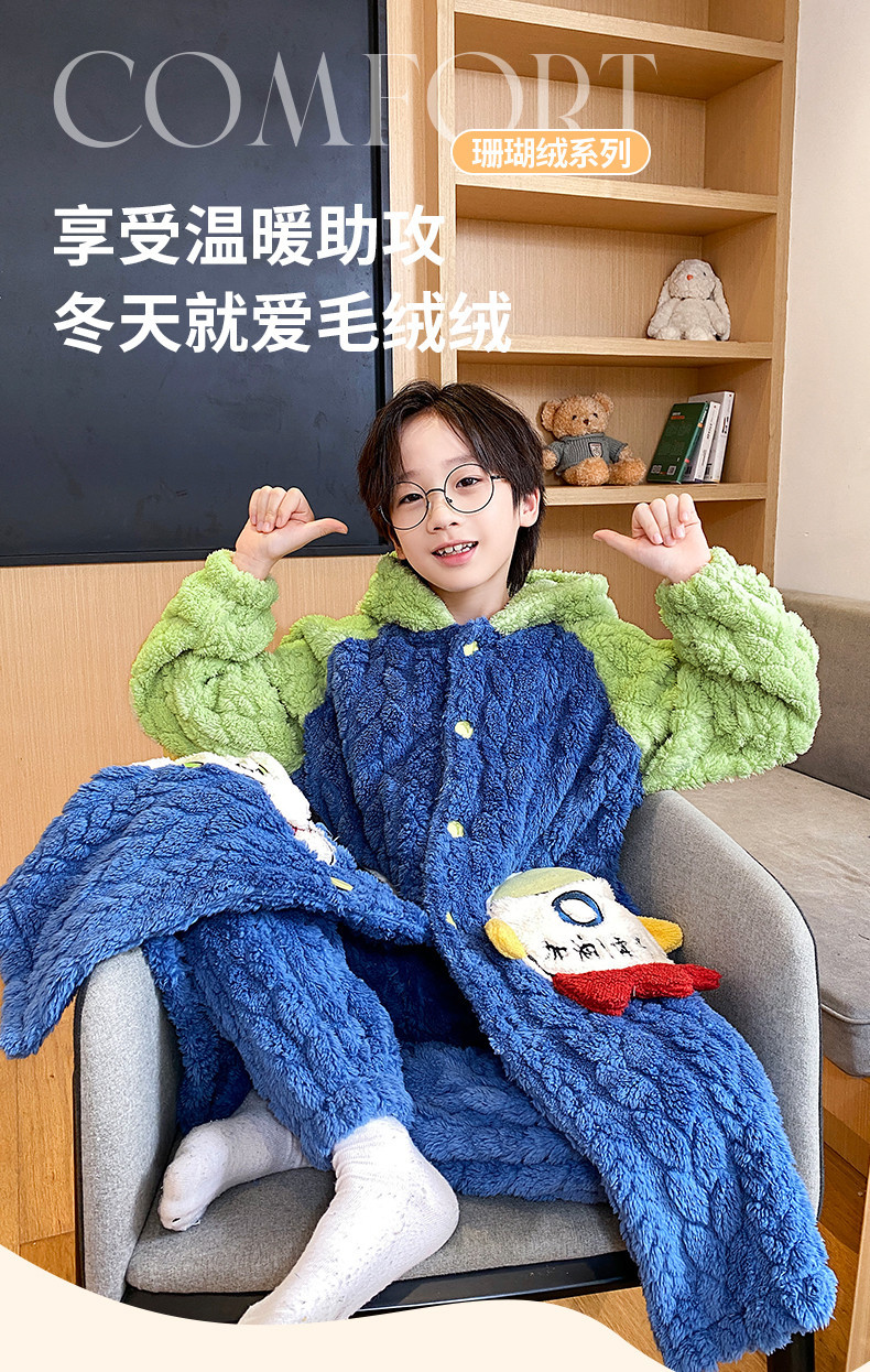 子供用のパジャマ男の子用のパジャマ秋と冬のベルベットの厚いフランネルのベルベットの男の子の長いタイプの家庭服のバスローブ