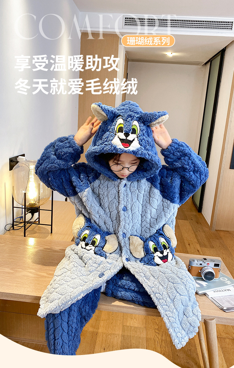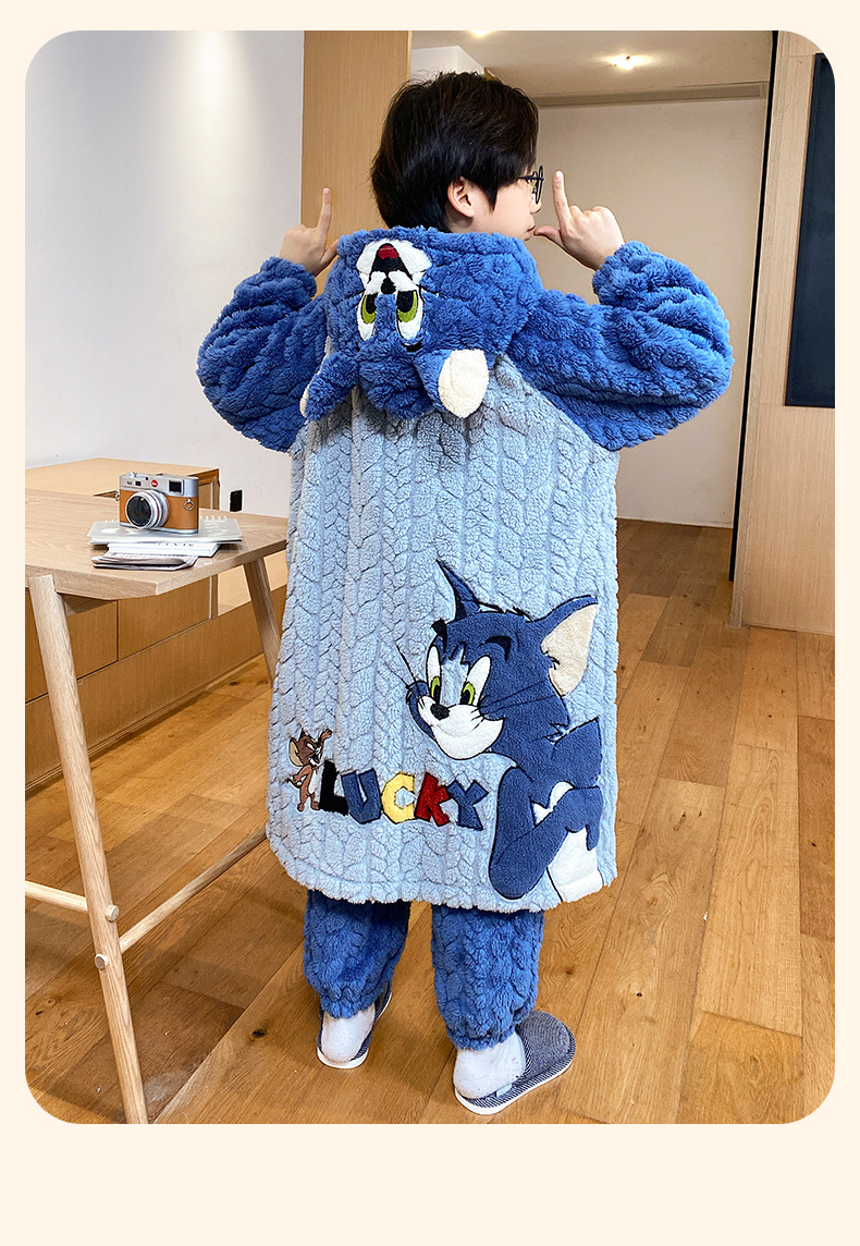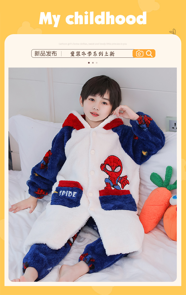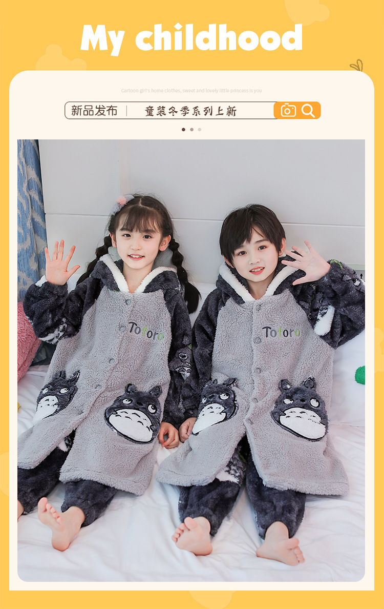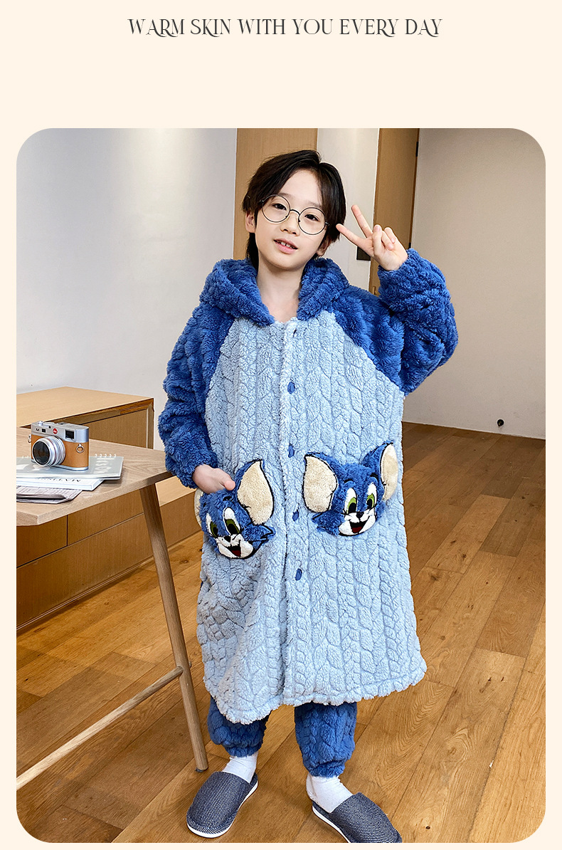 子供用のパジャマ男の子用のパジャマ秋と冬のベルベットの厚いフランネルのベルベットの男の子の長いタイプの家庭服のバスローブ