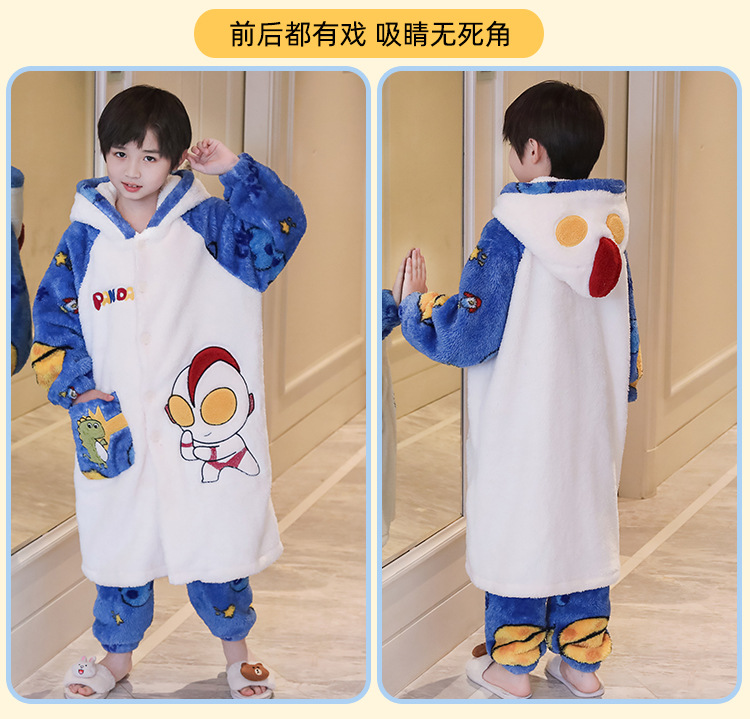 儿童睡袍女童冬季加厚加绒法兰绒奥特曼睡衣男孩珊瑚绒浴袍家居服