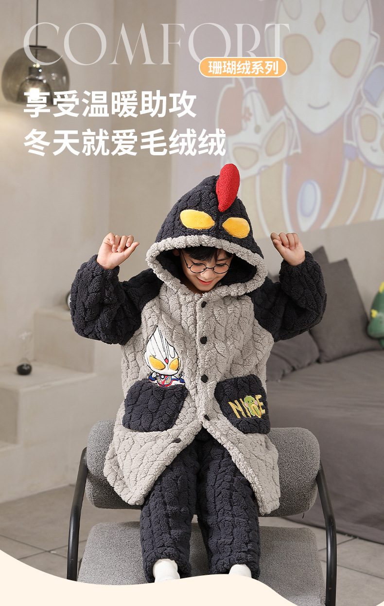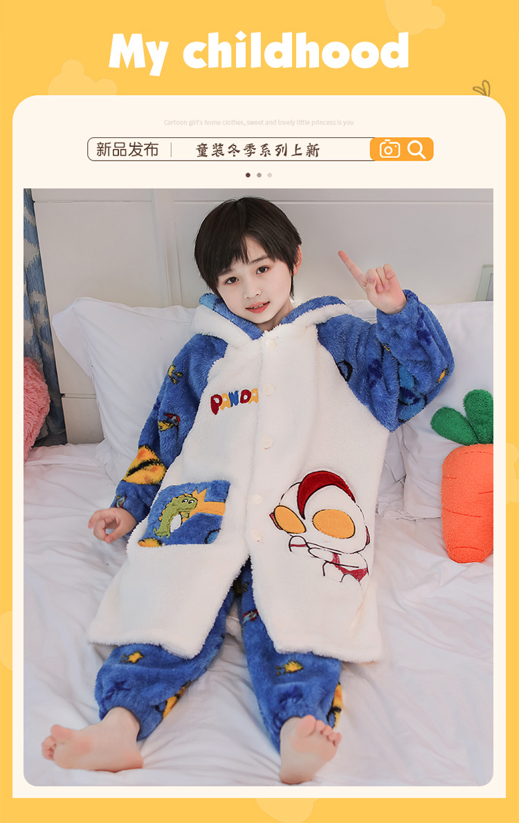 秋冬男童睡袍加厚珊瑚绒女童奥特曼睡衣男孩浴袍宝宝保暖家居服