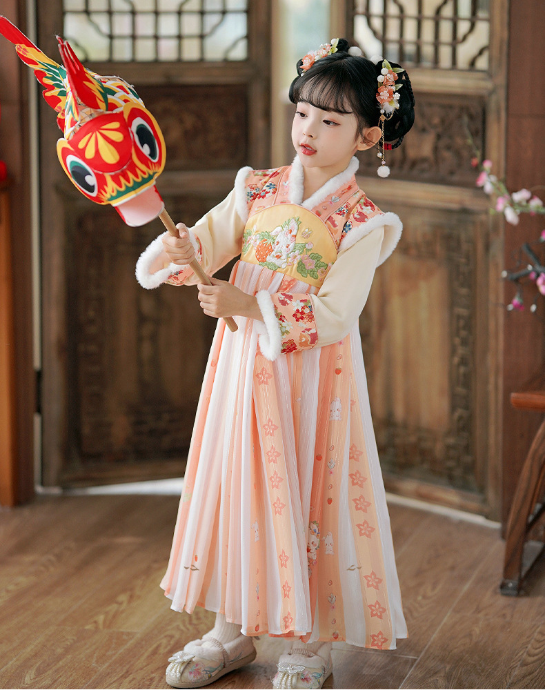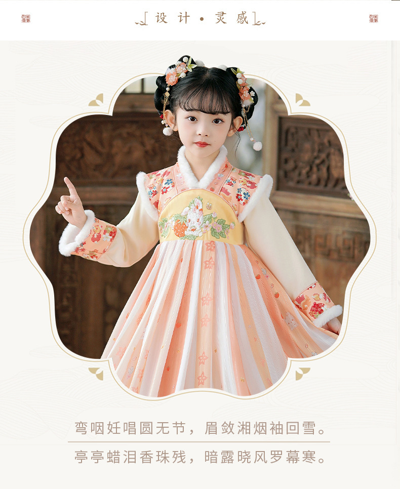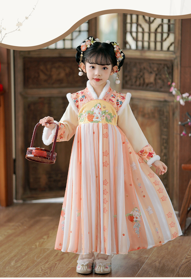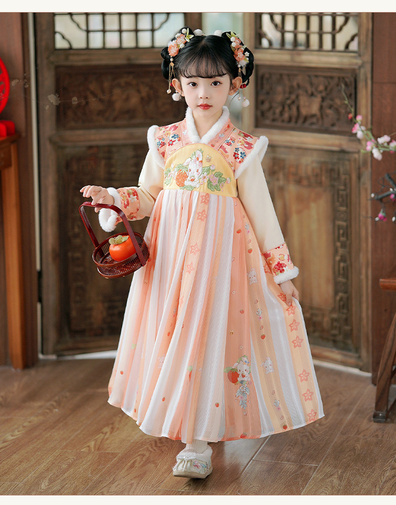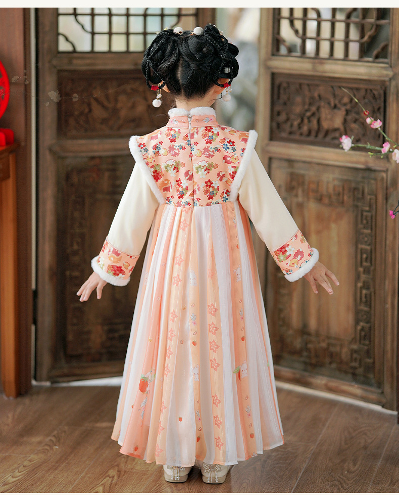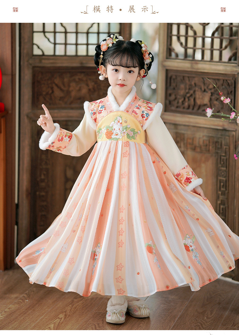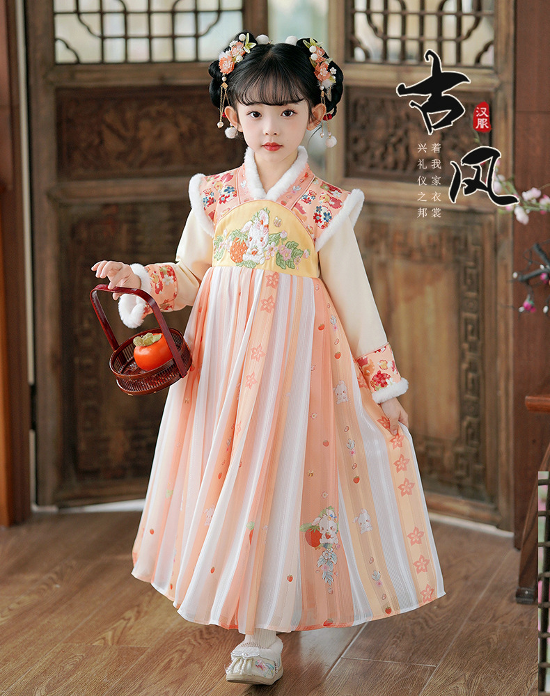 汉服女童冬款儿童古风古装拜年服女宝宝加绒中国风唐装演出过年服