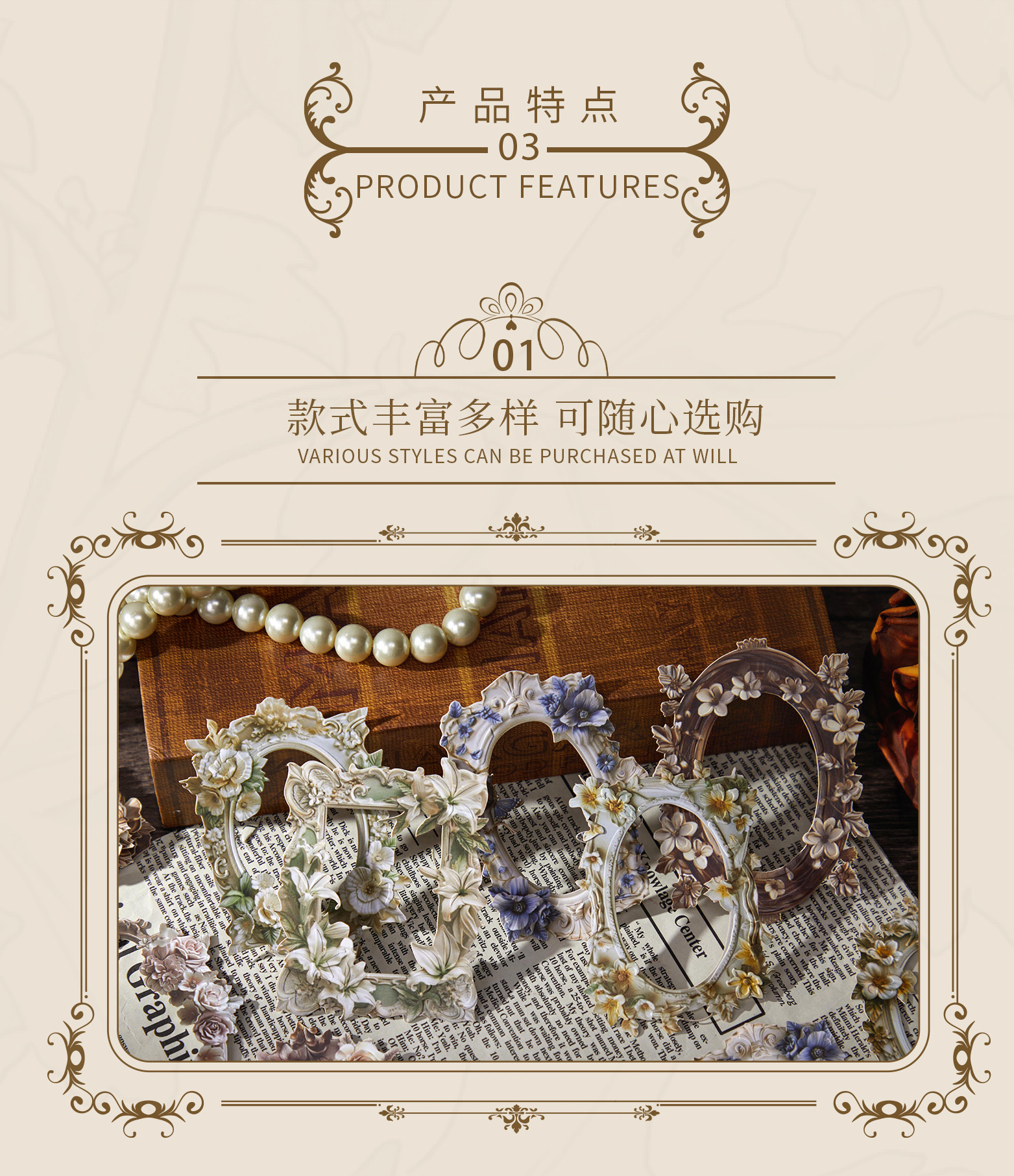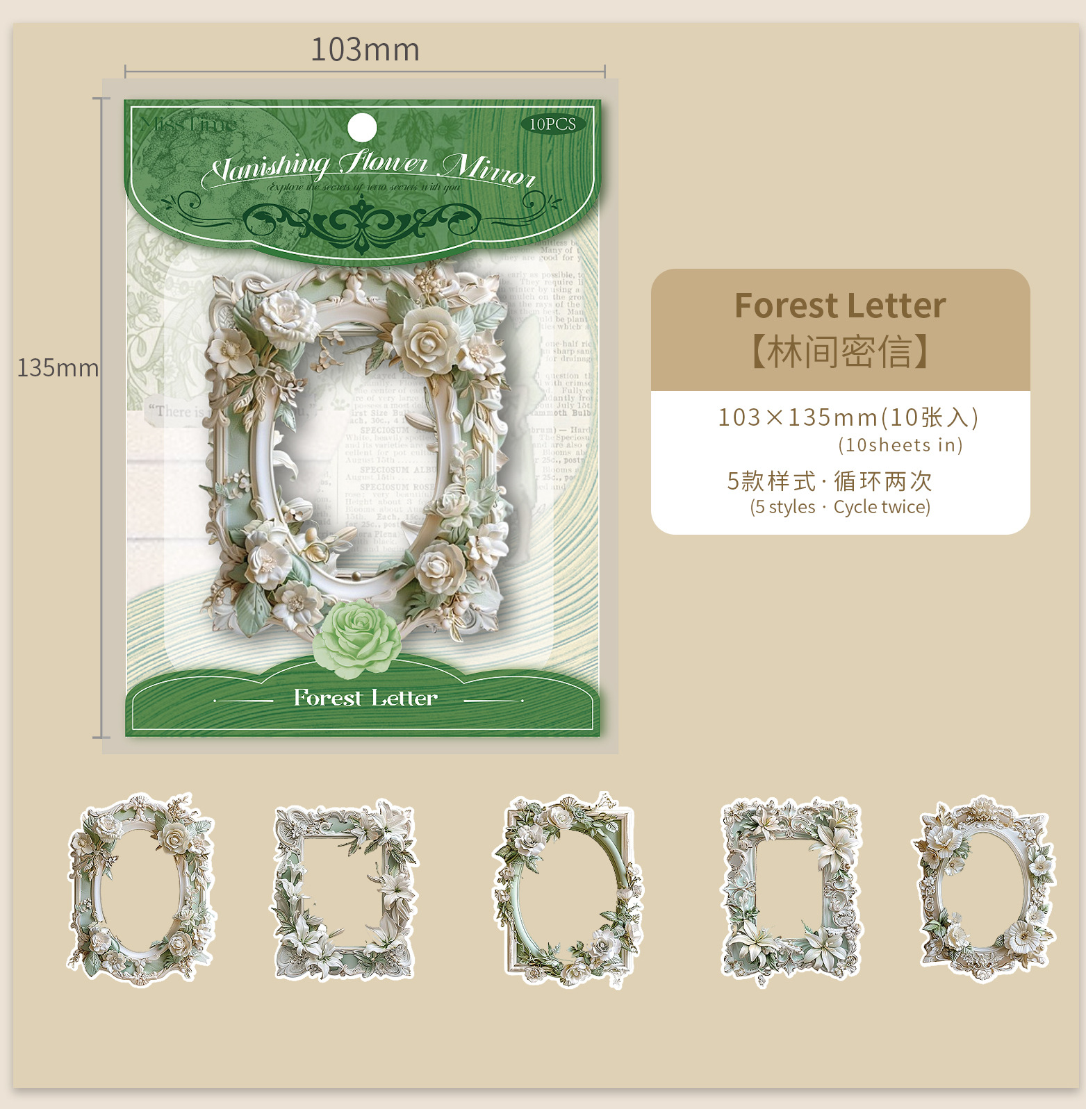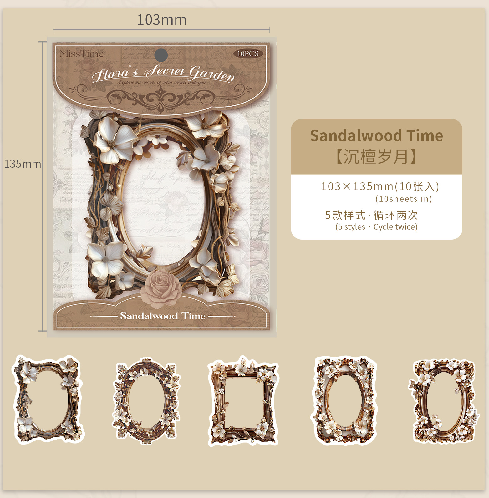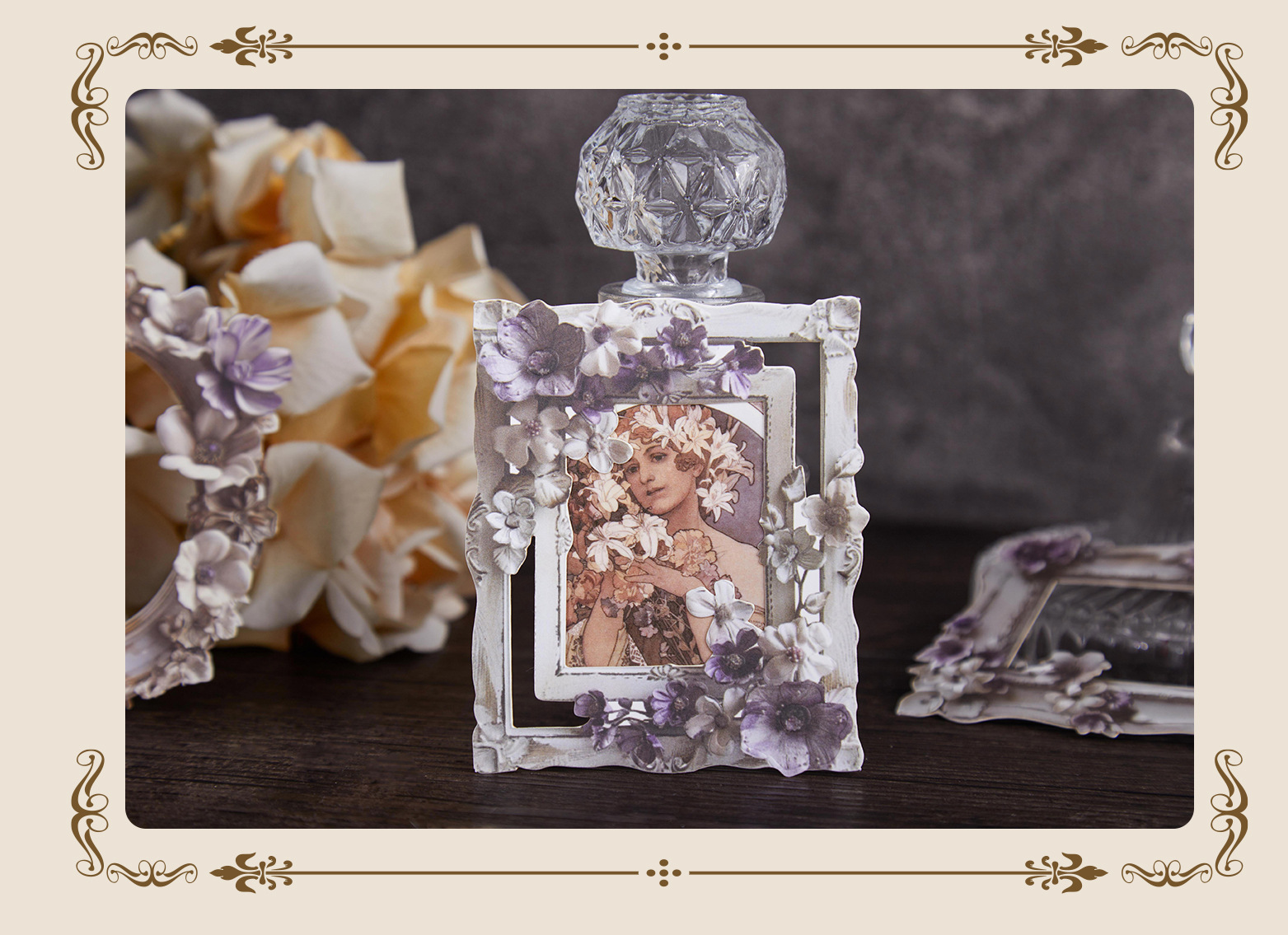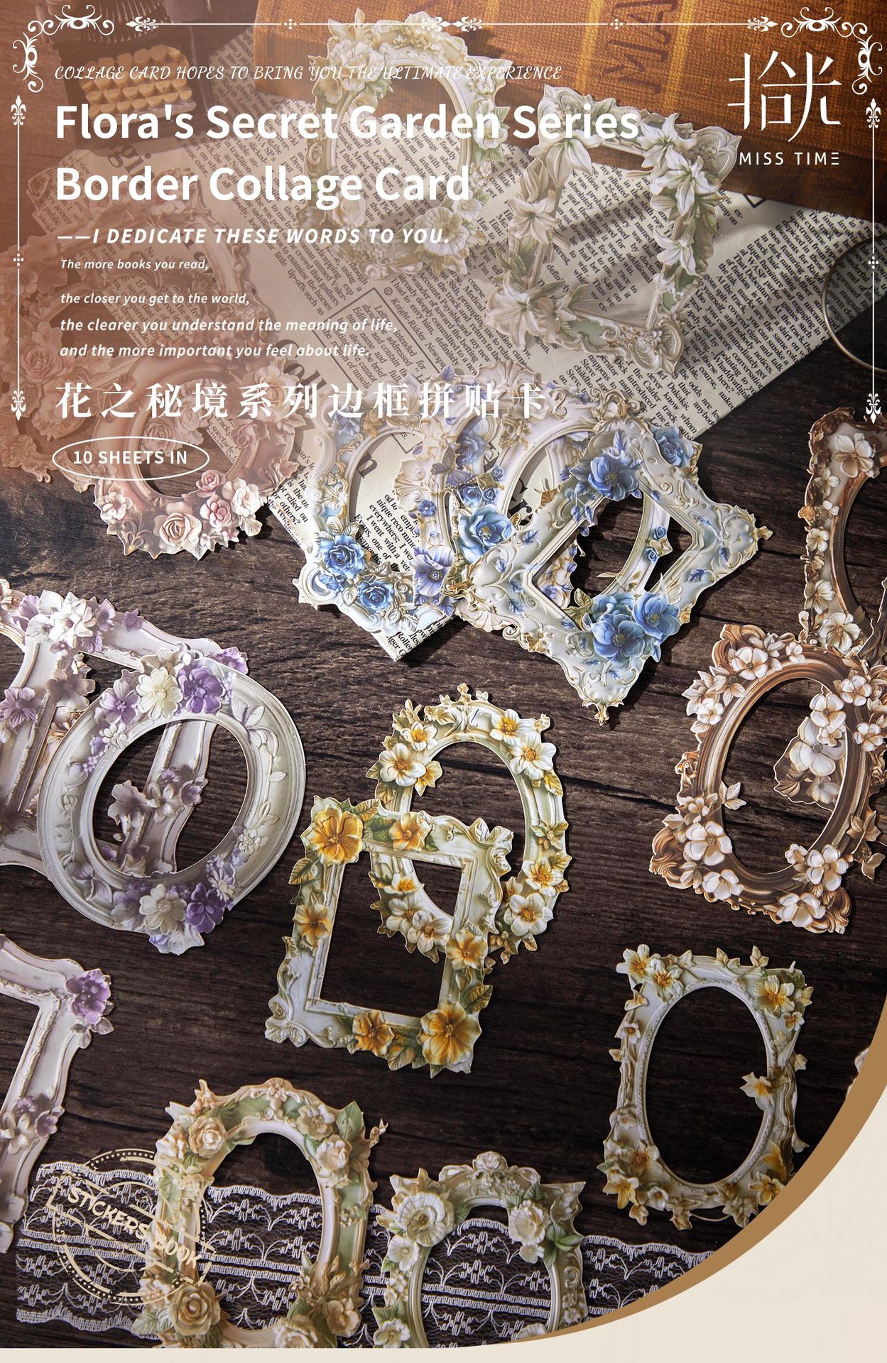 拾光レトロ手帳用ボーダーステッカー 花の秘境シリーズ デコレーションDIYコラージュ素材 花柄ガチャステッカー