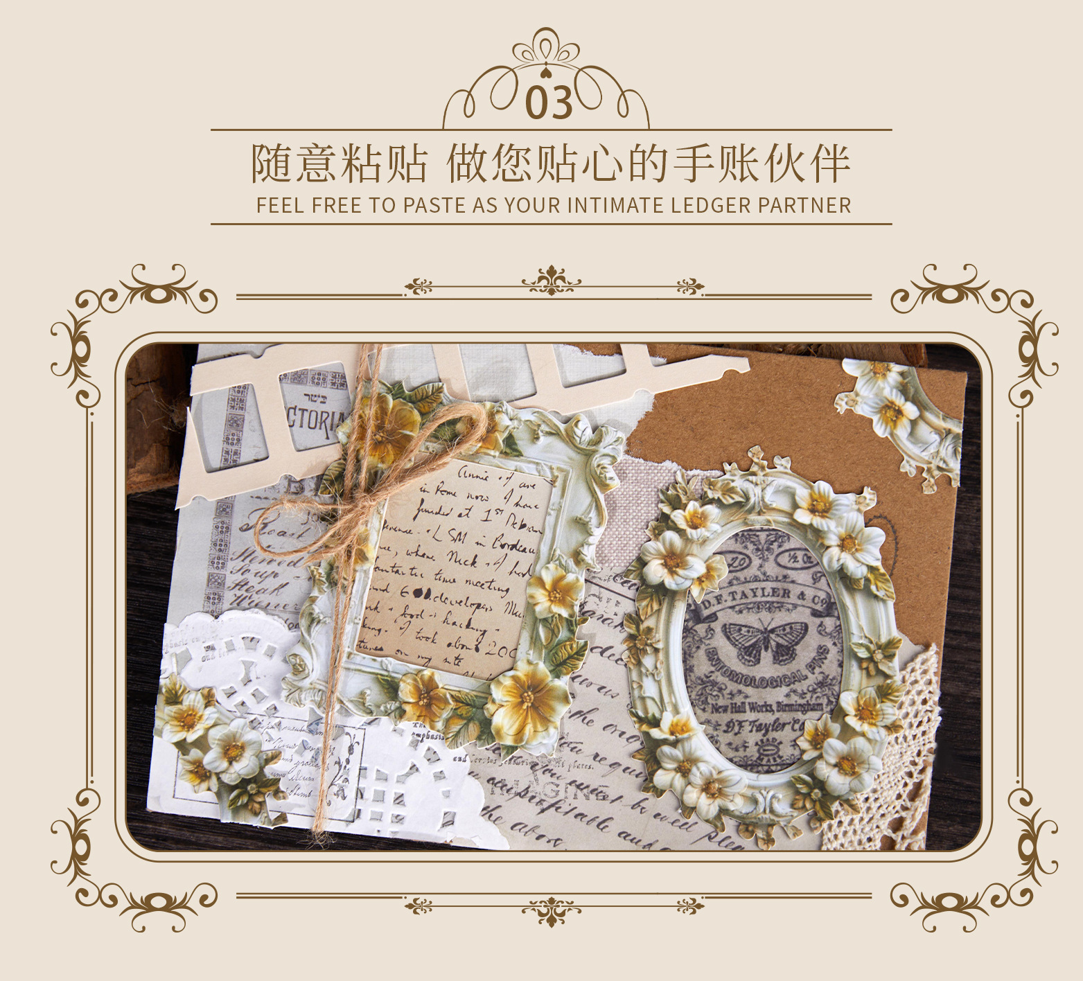 光を拾う素材紙クリーム手札シリーズレトロ韓系手帳素材diy装飾タイル背景