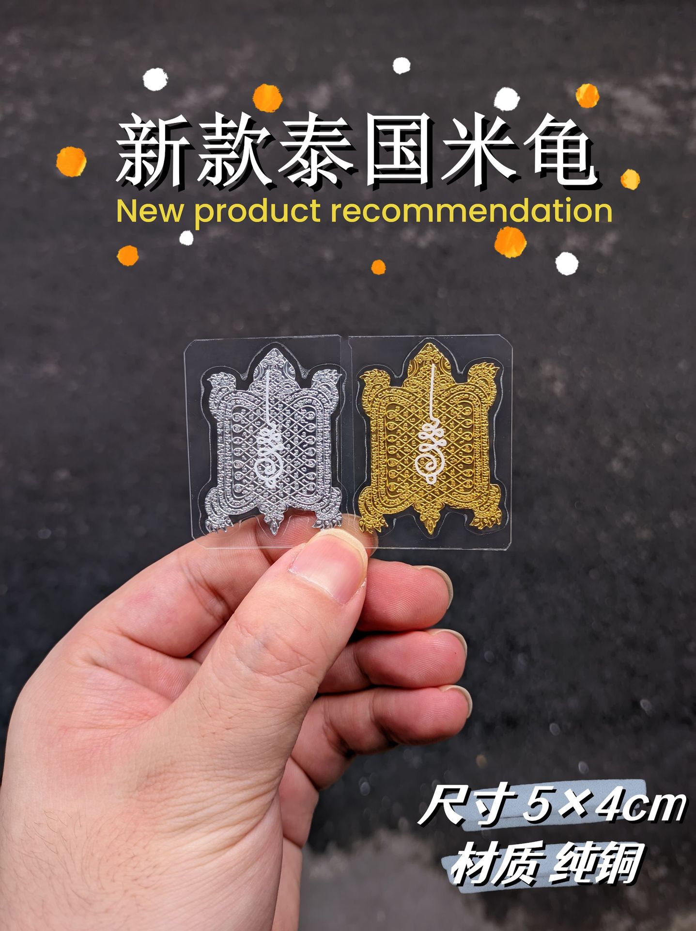 小金米亀【角ビニールシール付き】,小さな銀米亀【角型プラスチックシール付き】