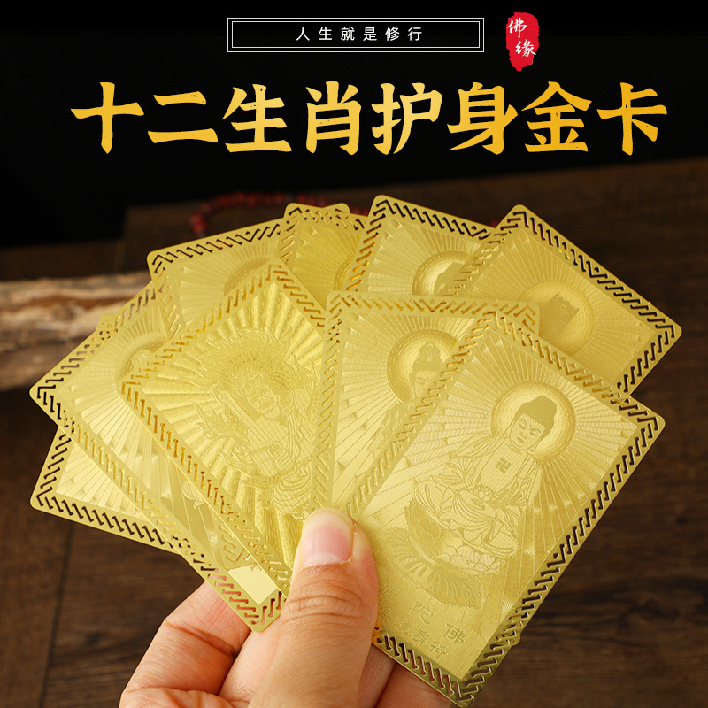 新商品チベット式銅彩色カード八大守護神金カード十二生肖金カード帯プラスチックシール本命携帯金カード