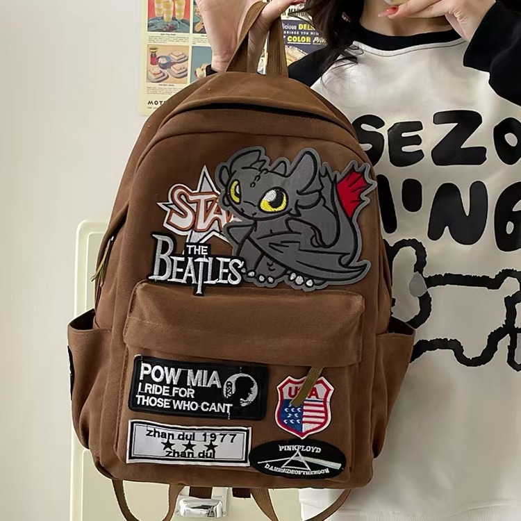 新しい 2024 女の子アメリカンレトロスタイルリトルモンスターバックパック漫画ヒップホップスタイルスクールバッグカジュアルバックパックトレンド