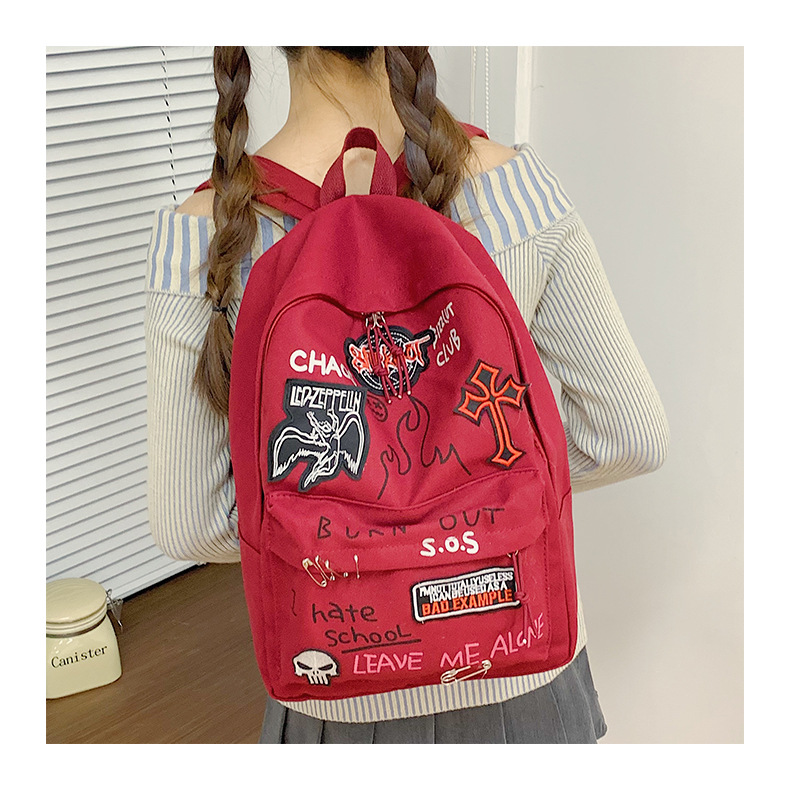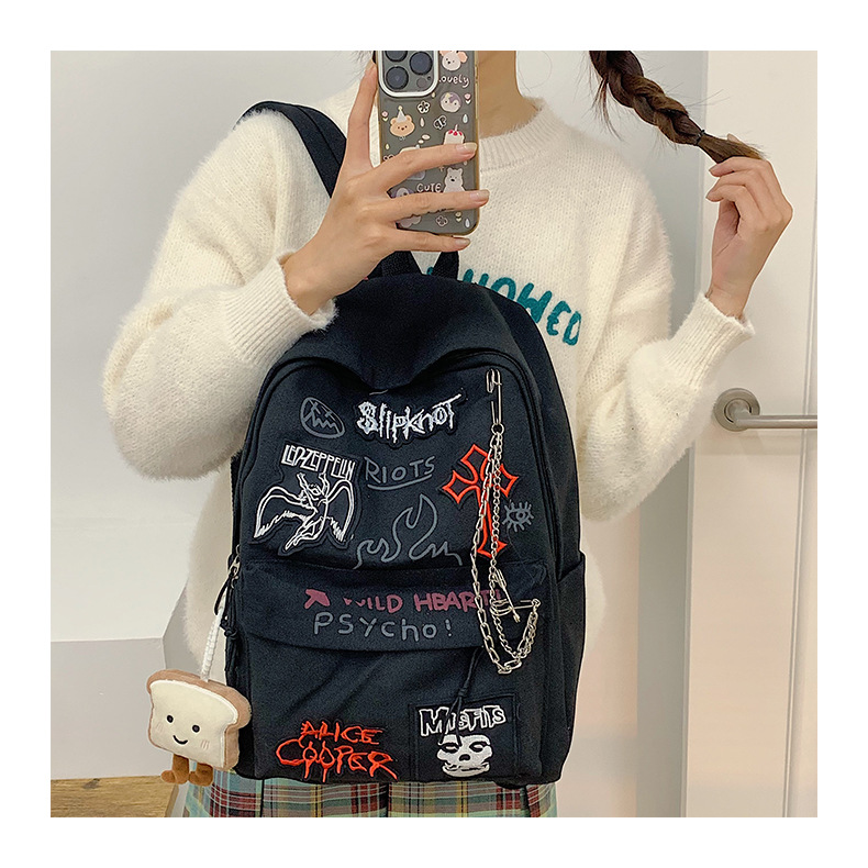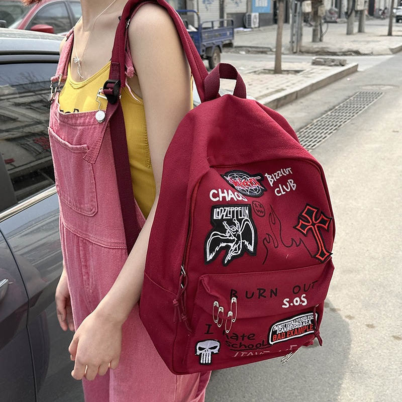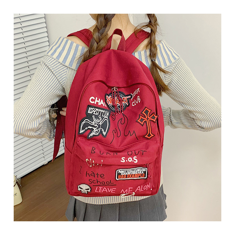 クロスボーダーアメリカンレトロヒップホップスクールバッグ新しい外出レジャーバッグ学生クラス通勤多用途バックパック女性用