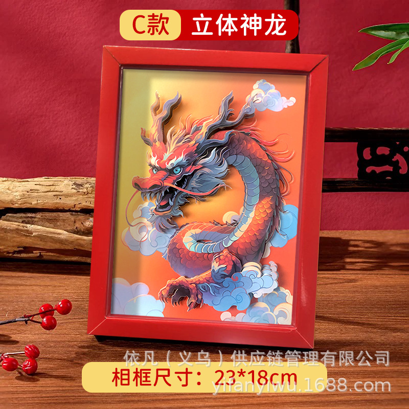 国潮国風招財覚醒獅子3d立体画鳳凰ヘラジカ立体diy装飾絵置物台