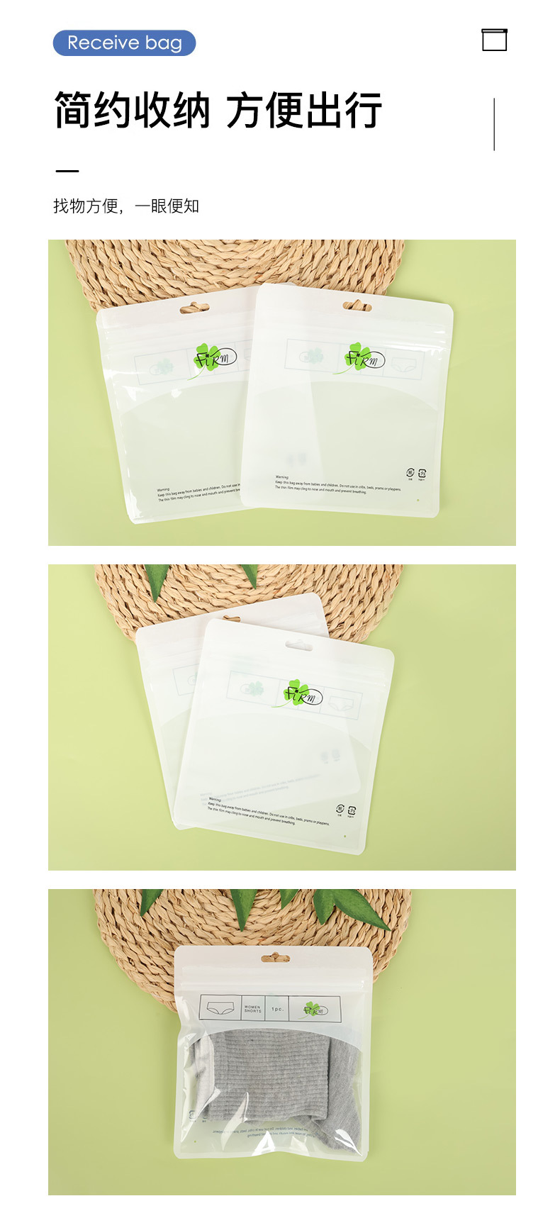 メーカー直販の衣類包装袋、ジッパー付き袋、下着・靴下収納袋、汎用厚手包装プラスチック袋