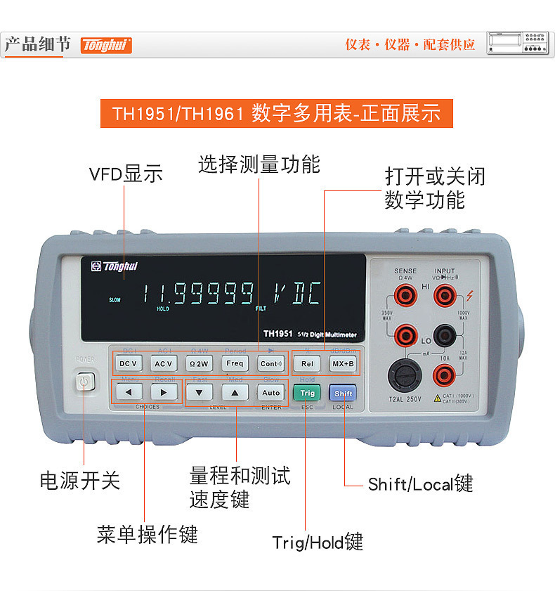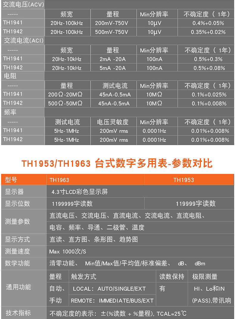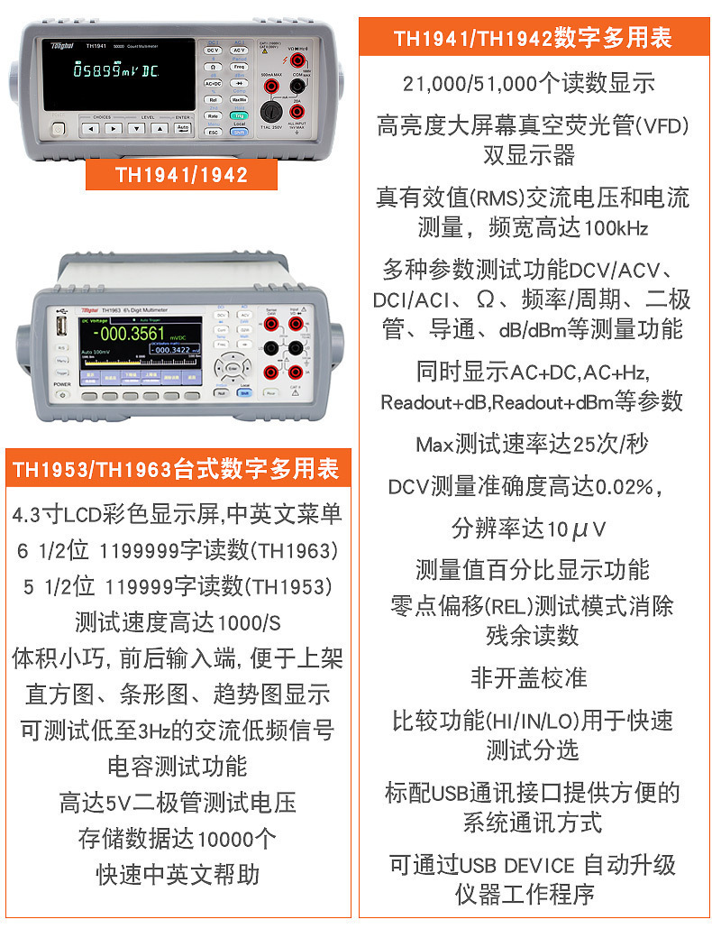 同恵卓上デジタルマルチメーターTH1953/1952高精度中英語デジタル表示万能メーター