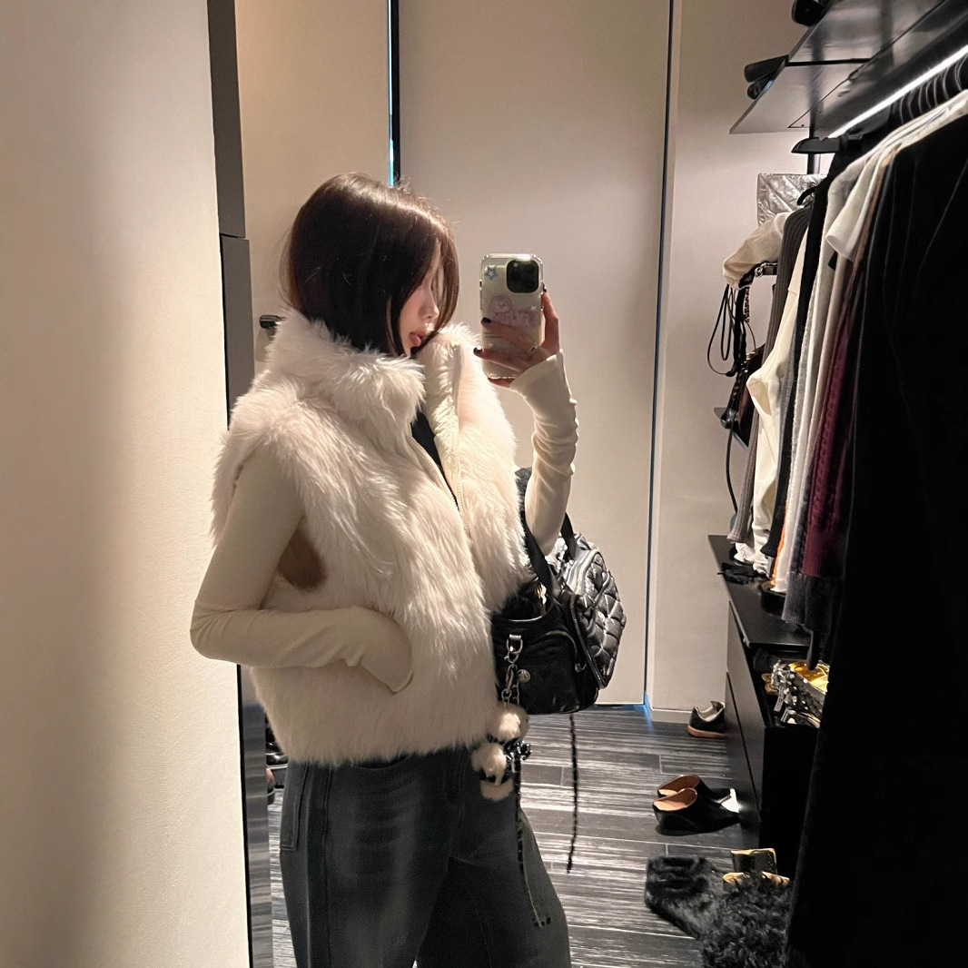 高品质主义立领仿貂毛马甲女两面穿环保紫貂皮草背心无袖上衣短款