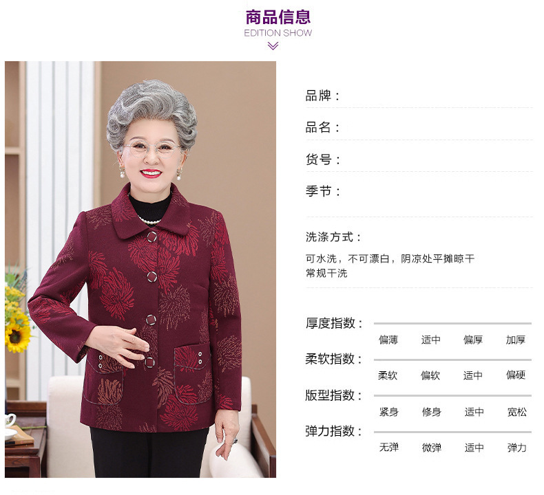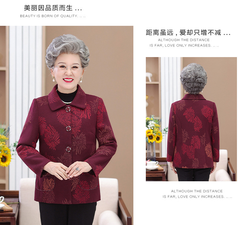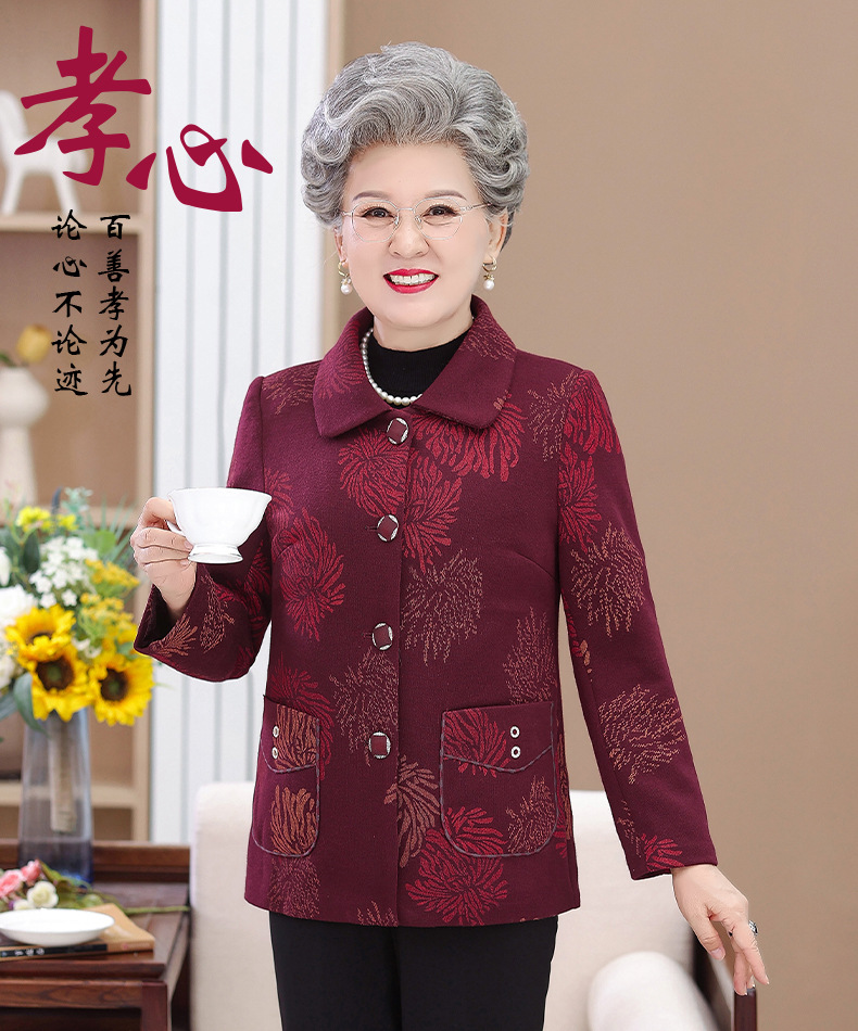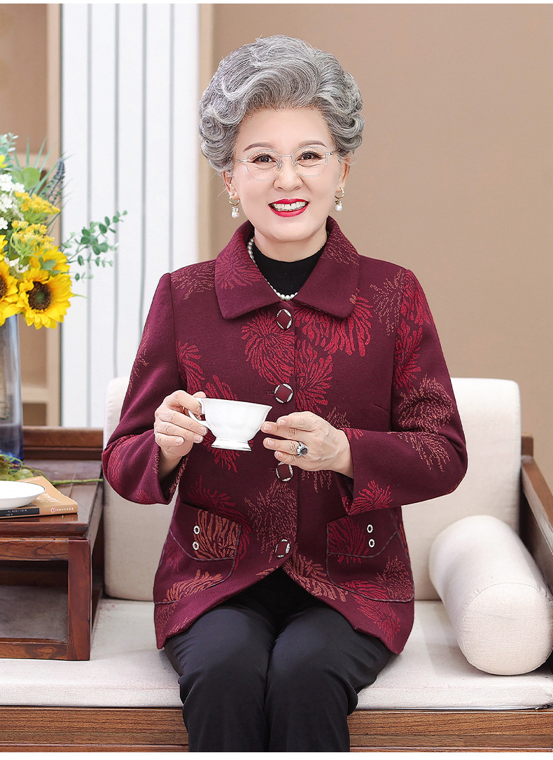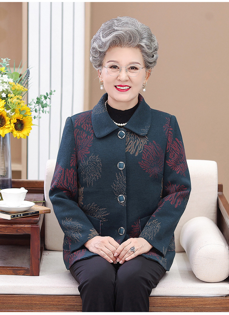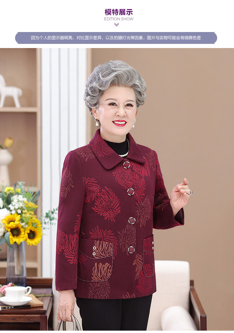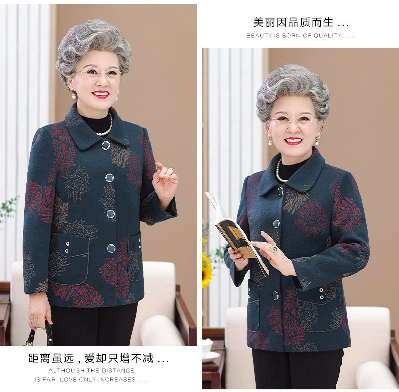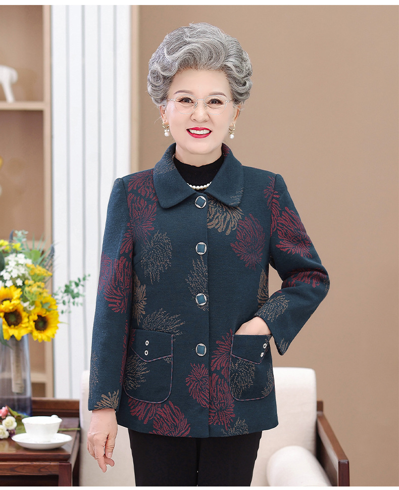 おばあちゃんの冬服、裏起毛厚手のジャケット、中高年女性の秋冬用、襟付きママスーツ、高齢女性の服