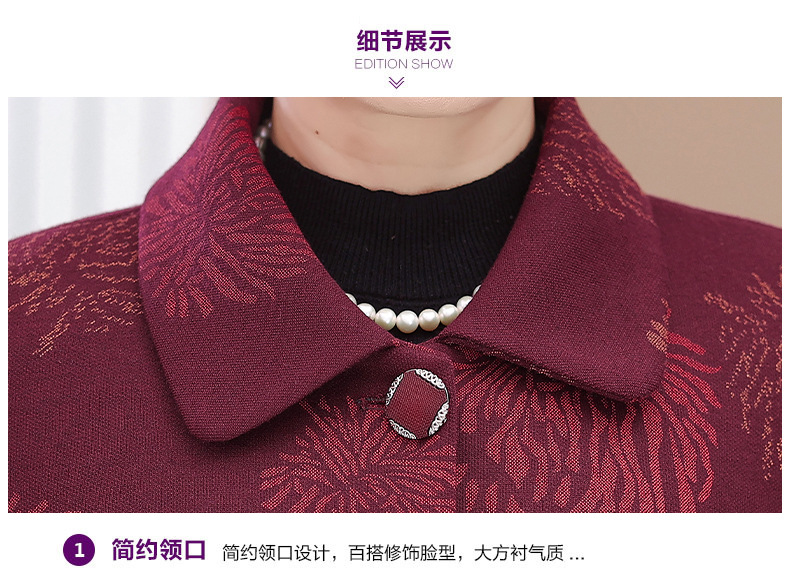 中高年女性向け冬用セーター、お母さん向け秋冬のおしゃれなコート、裏起毛・厚手の暖かい服、おばあちゃん向けニットカーディガン