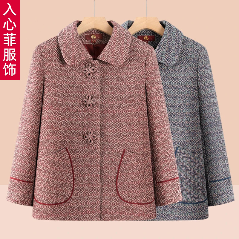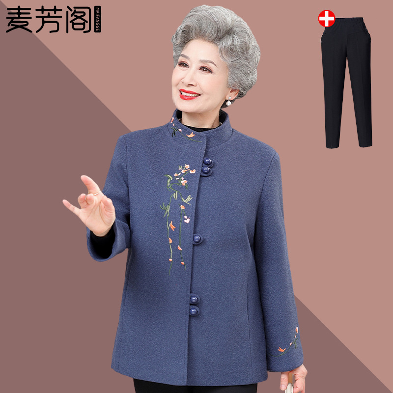 奶奶装秋装毛呢外套女中老年人春秋季唐装妈妈呢子上衣老太太衣服
