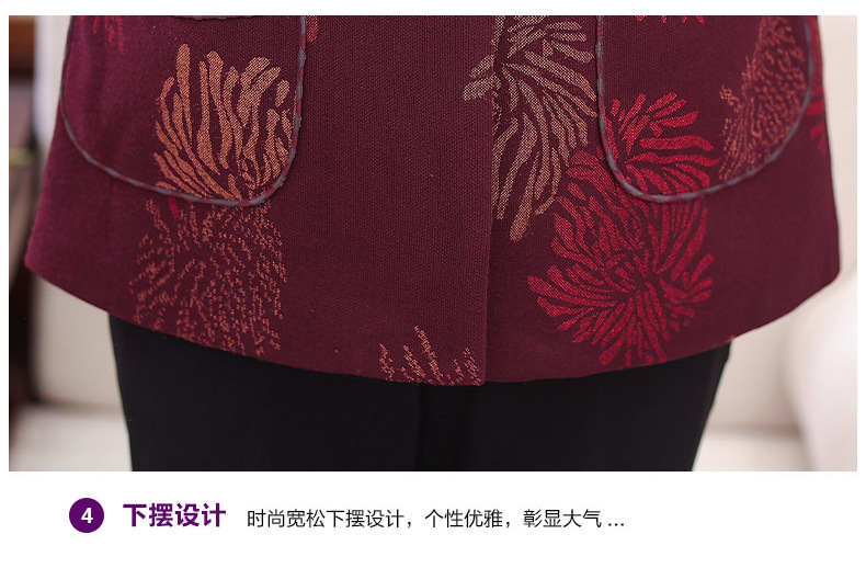 中高年女性の冬服、おばあちゃんの唐装、裏起毛厚手のジャケット、70歳のお母さんの秋冬用トップス、おばあさんの服