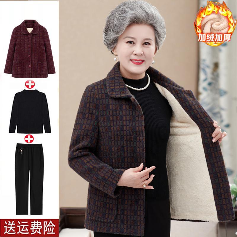 中老年人奶奶秋冬装毛呢外套女老太太呢子70岁80妈妈加绒翻领上衣