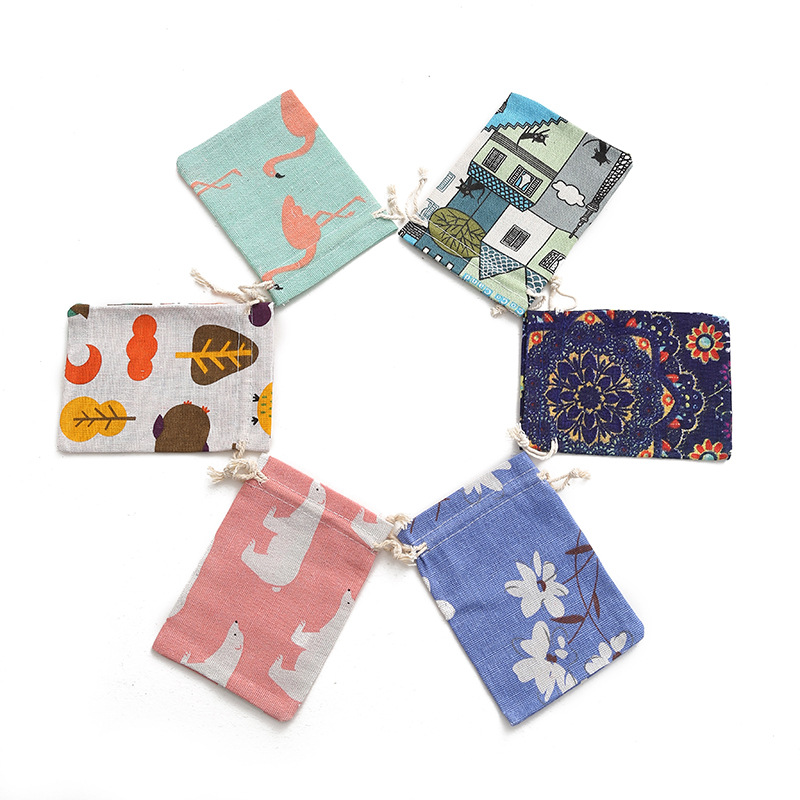プリントコットン収納袋、漫画の小物用巾着袋、ジュエリーアクセサリーギフト包装袋、ロゴ印刷可能な布袋