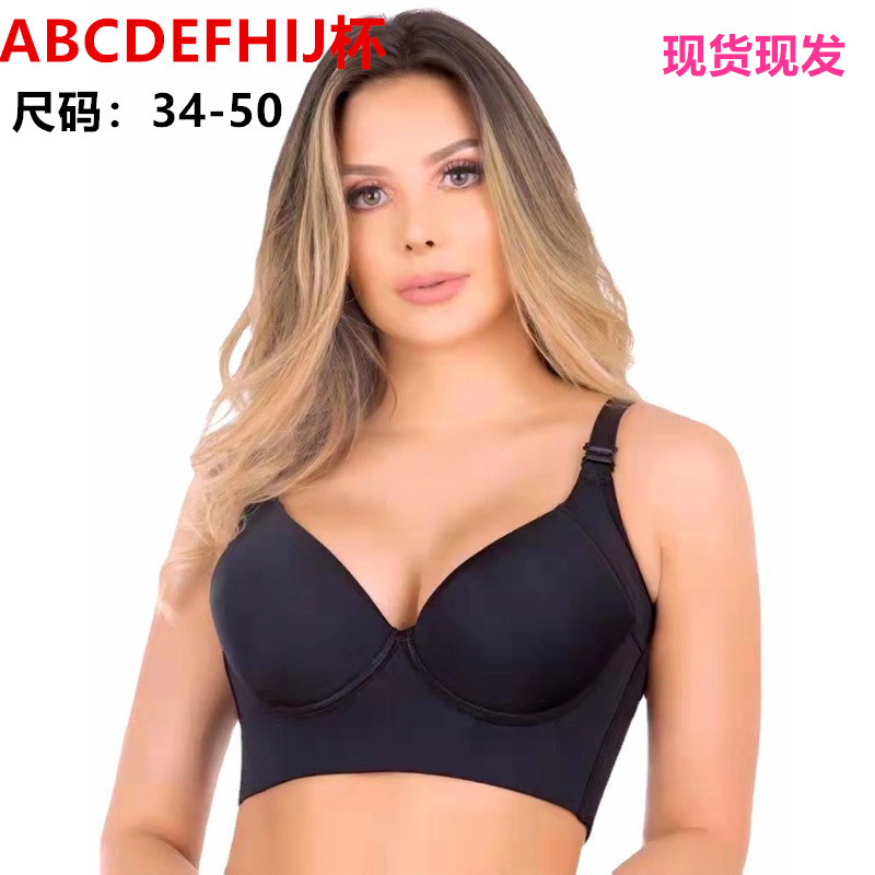 跨境内衣女大胸显小防下垂文胸大码调整型无痕收副乳女士文胸