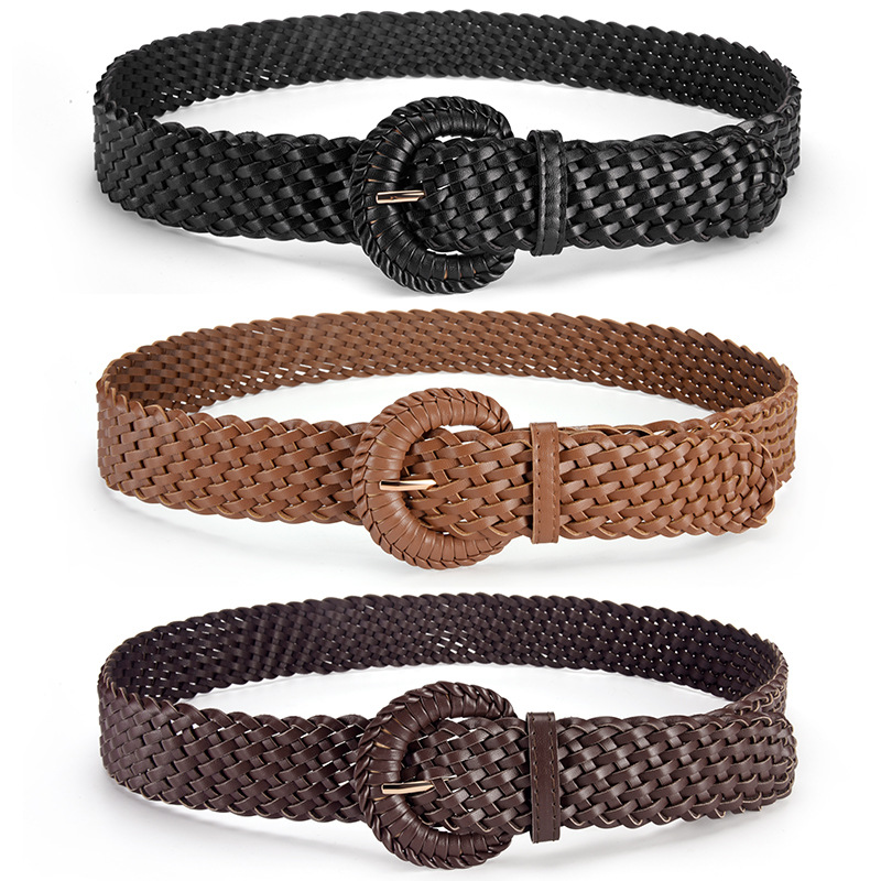 新款编织腰带百搭时尚扣头仿皮编织女士皮带搭配大衣阔腿裤宽腰带