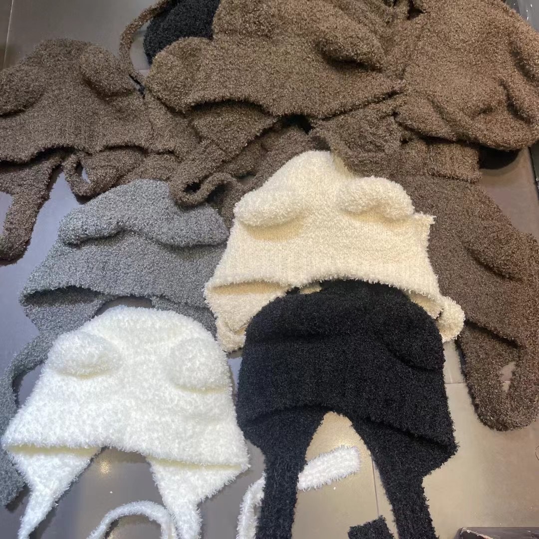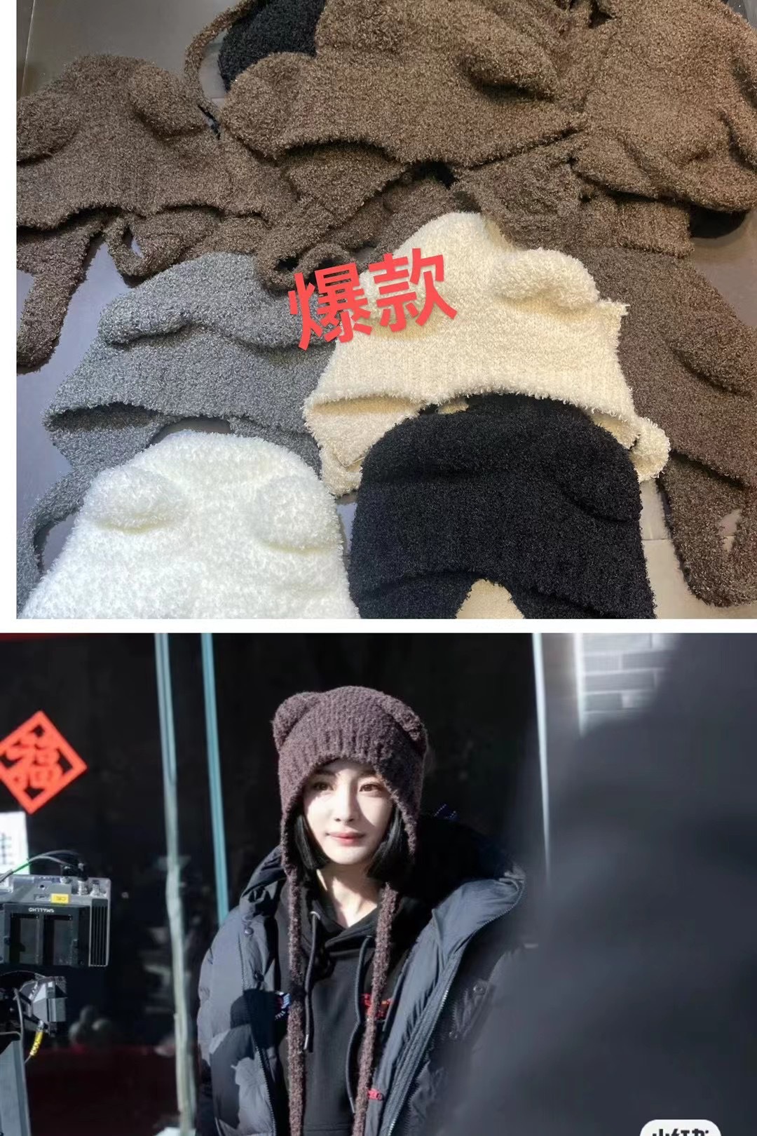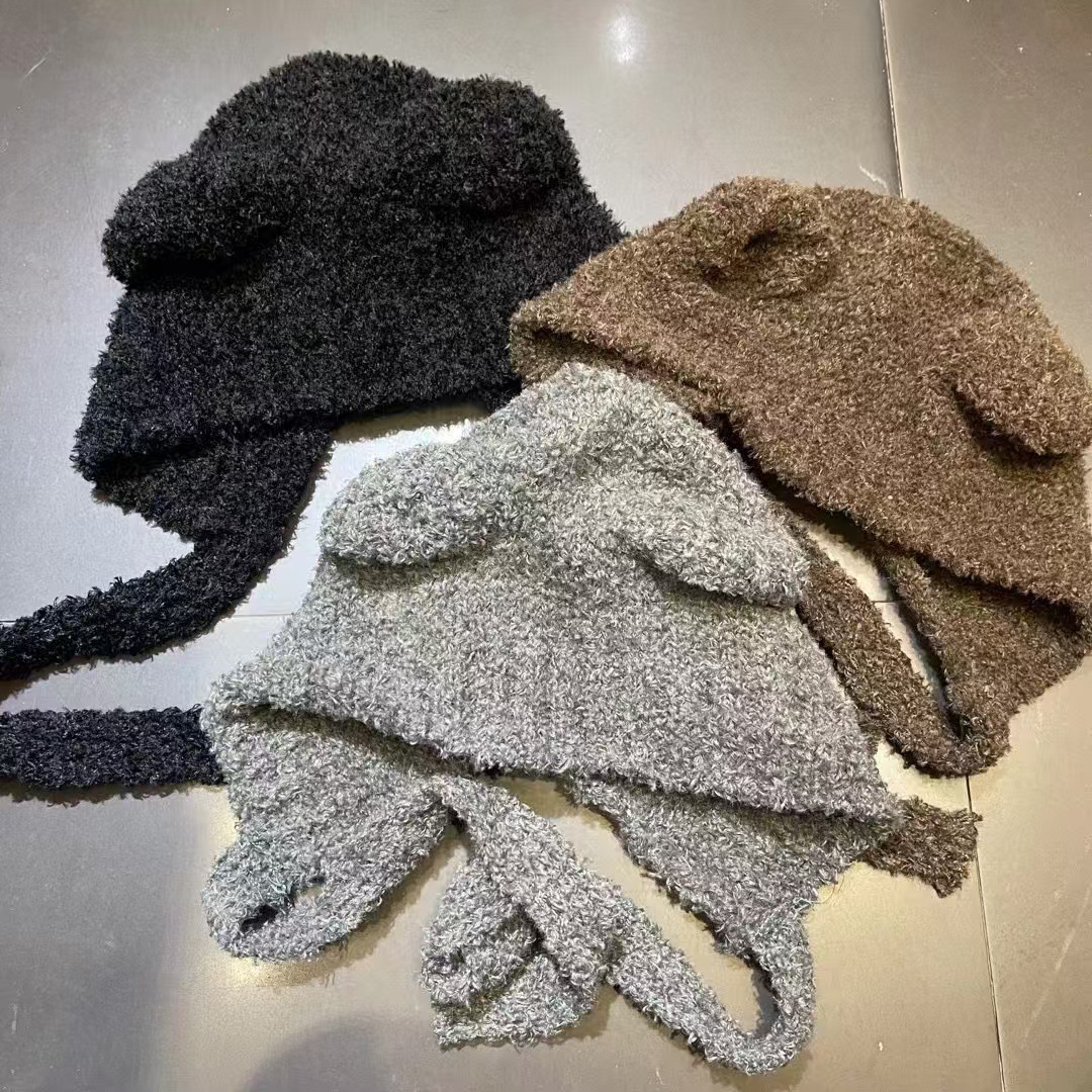 新型日系熊耳毛糸帽保温大つば女性用耳保護ニット帽防寒アウトドア防風帽