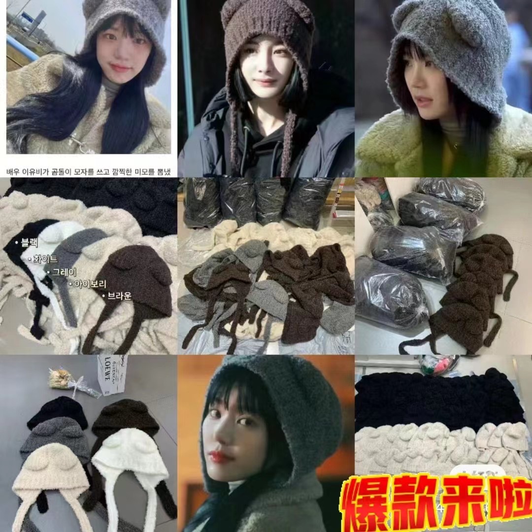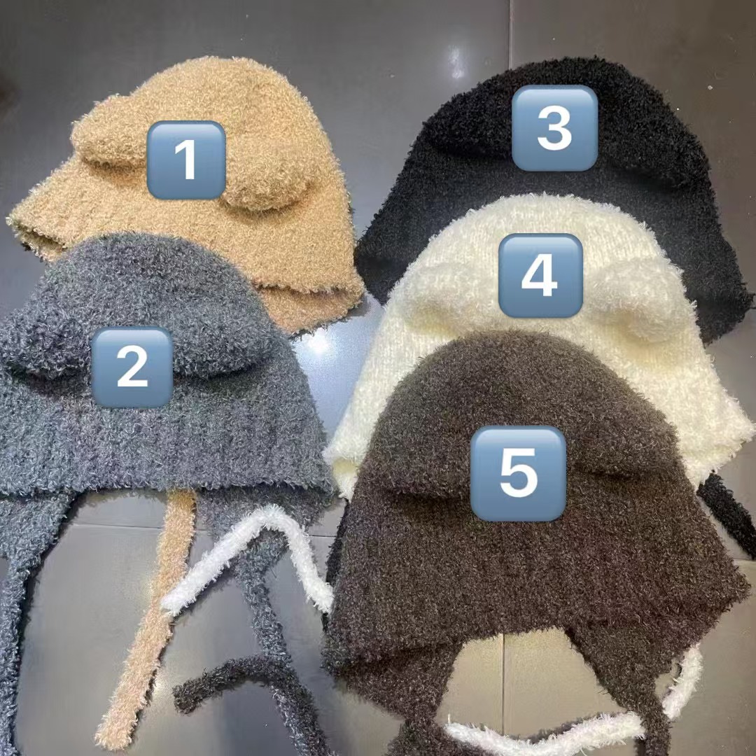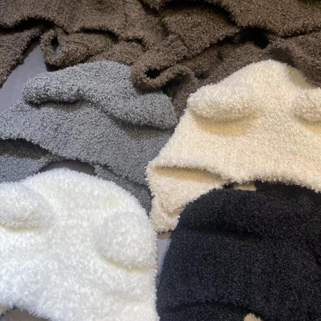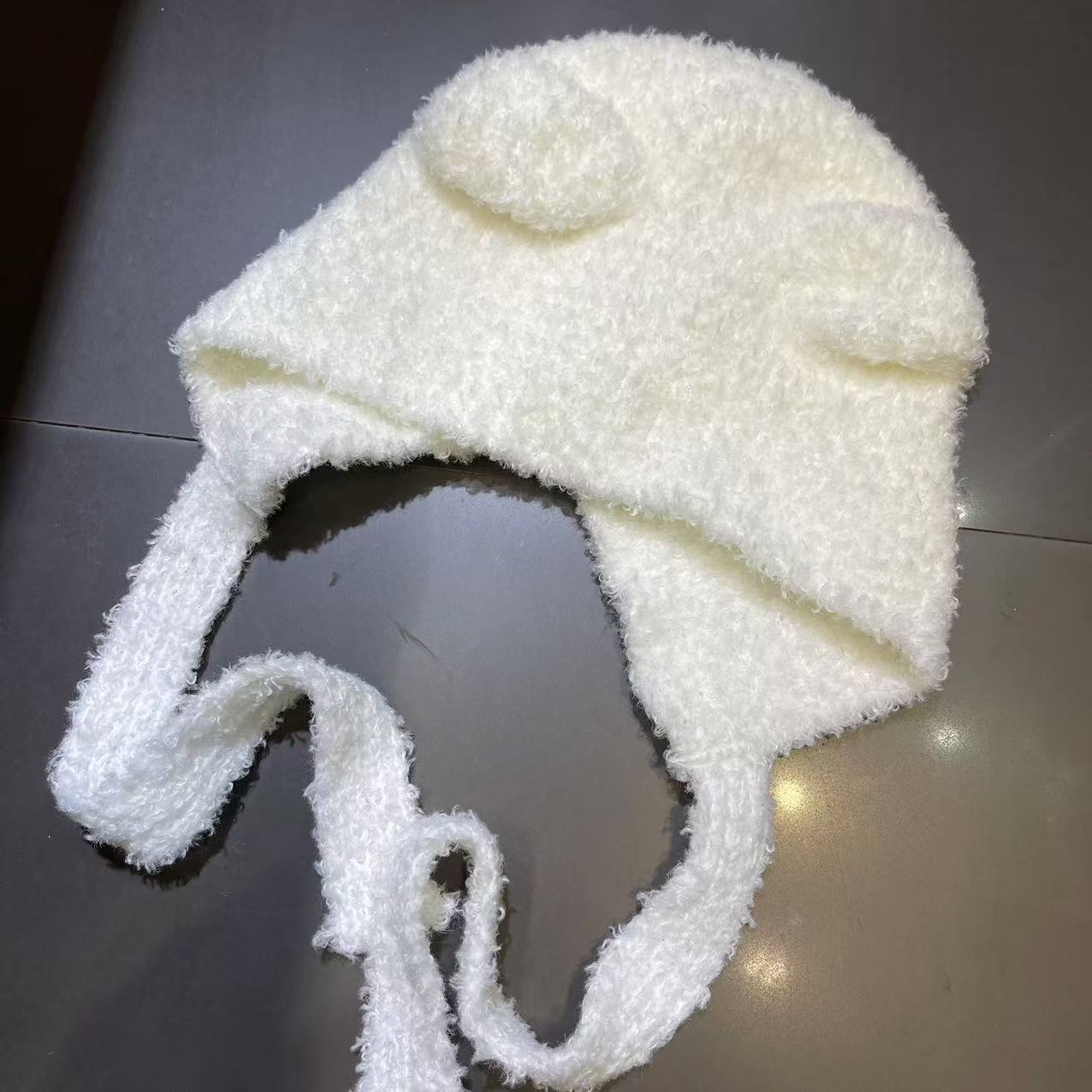 新型日系熊耳毛糸帽保温大つば女性用耳保護ニット帽防寒アウトドア防風帽