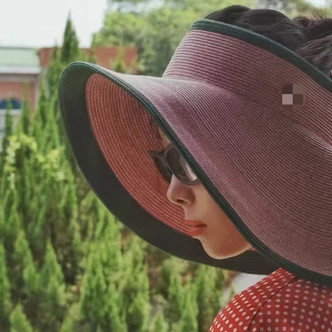 丸顔に適したポニーテールが結べる麦わら帽子、夏用韓国風つば広和風フィッシャーマンハット、顔を覆う日焼け止め中空帽子