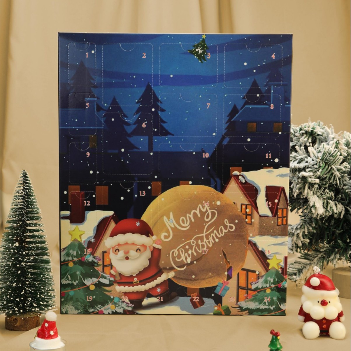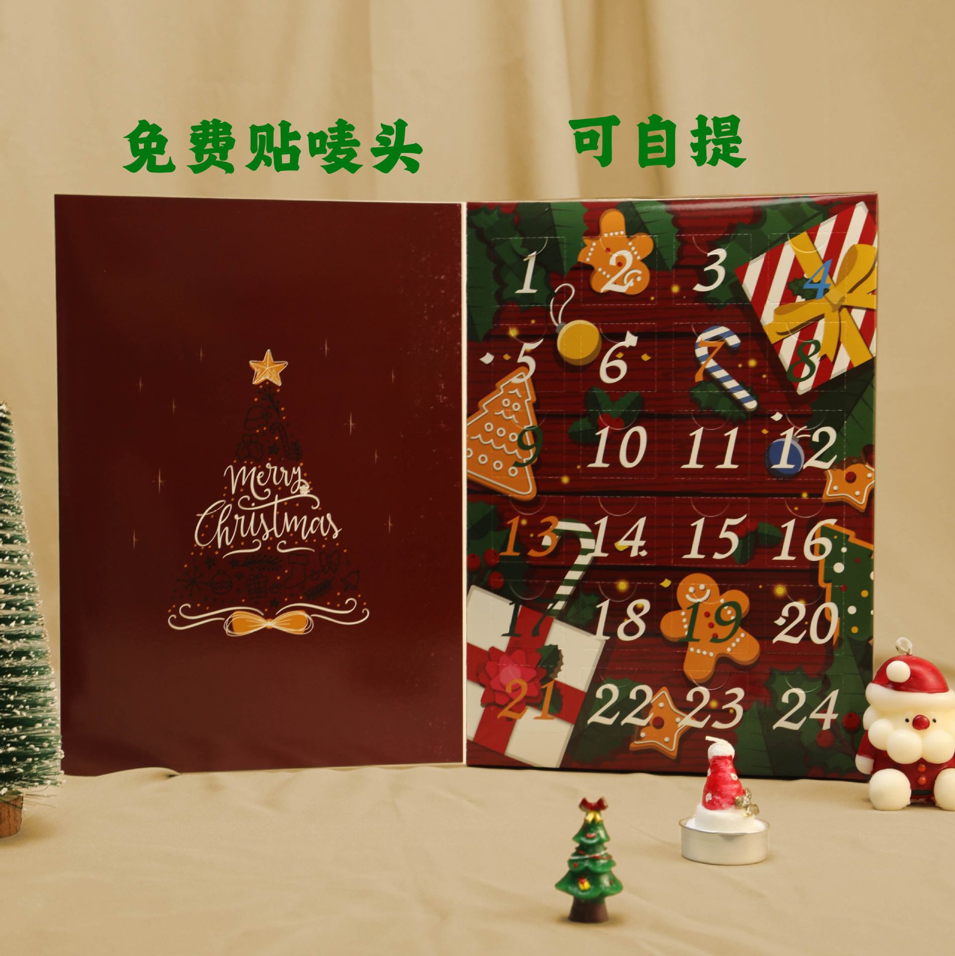圣诞降临倒数日历戳盒洞洞乐盲盒平安夜惊喜翻盖礼物盒跨境现货