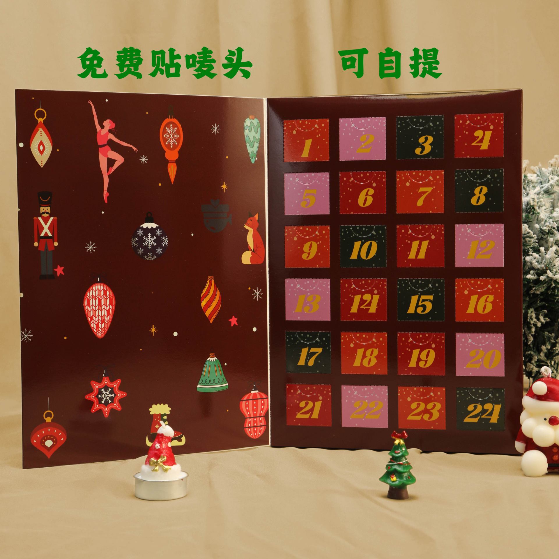 圣诞降临倒数日历戳盒洞洞乐盲盒平安夜惊喜翻盖礼物盒跨境批发