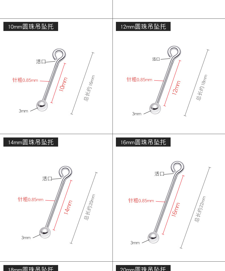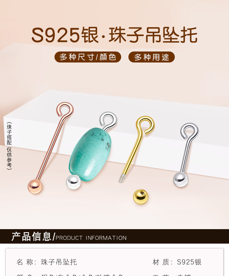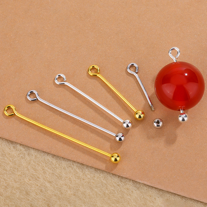 S925纯银串珠针圆珠针螺旋9字针通孔珠吊托手工吊坠耳坠耳饰配件
