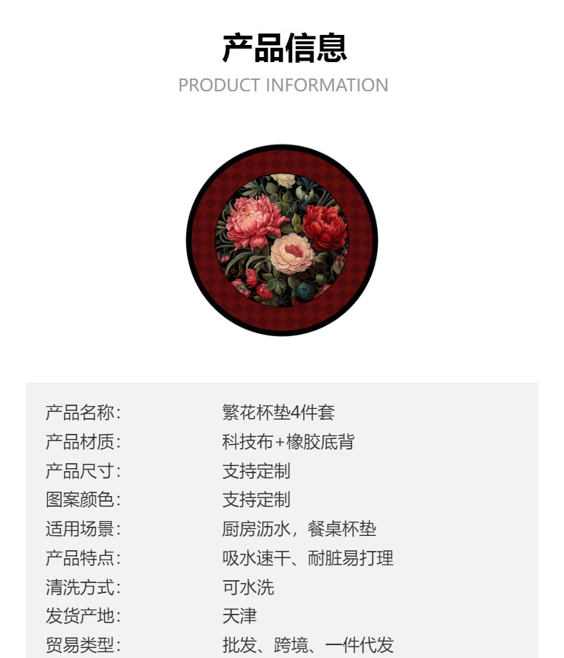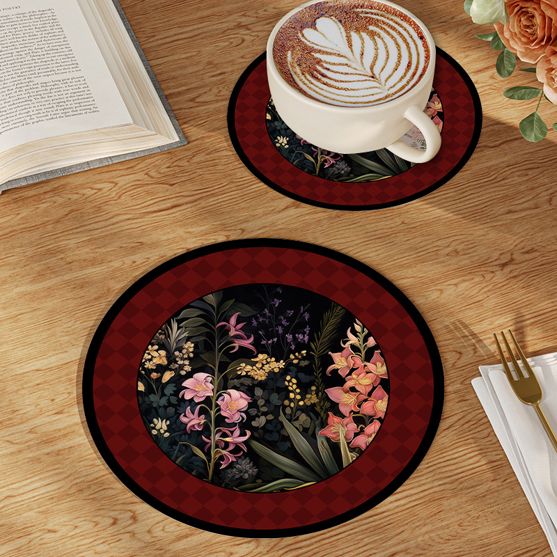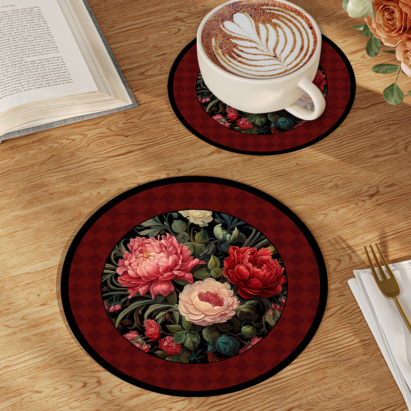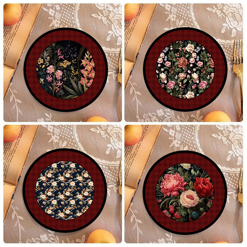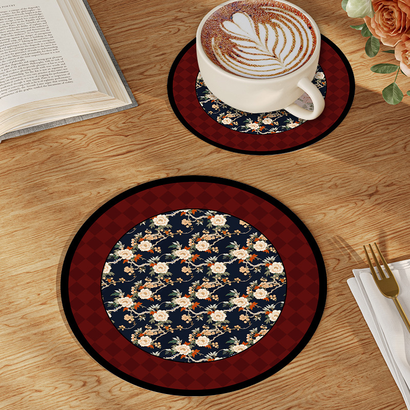 中世スタイルコースターヨーロッパレトロインシンプル断熱マットダイニングテーブルマットディッシュプレートコースター滑り止めと火傷防止印刷