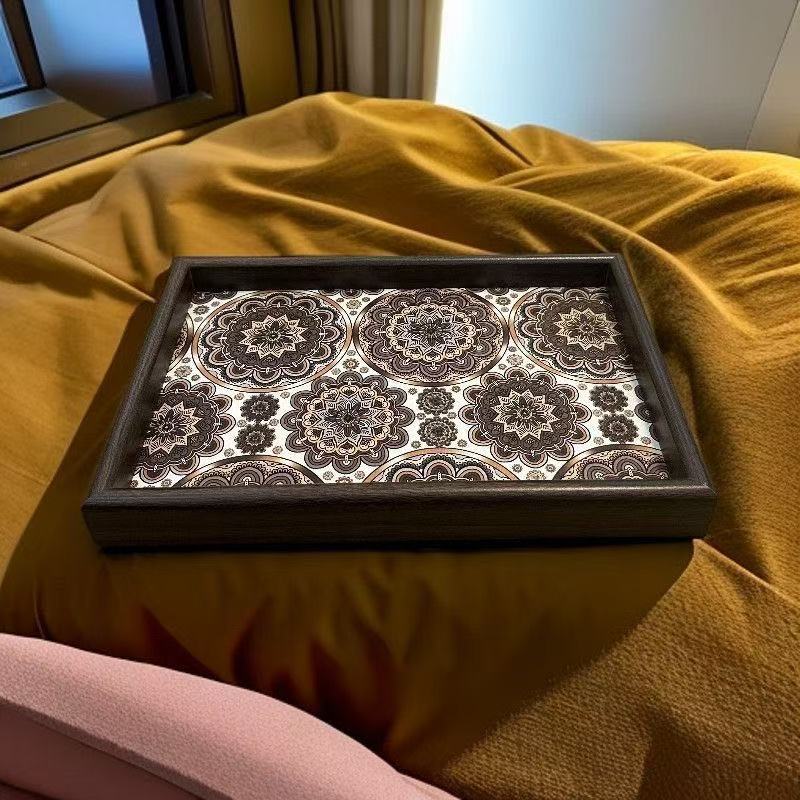 波西米亚风托盘异域客厅桌面收纳收拾收纳玄关家用木质皮革收纳盘